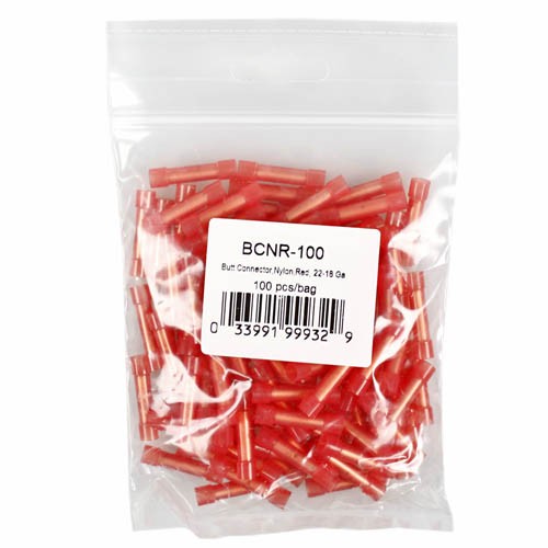 100 Pieces 22 to 18 Gauge Wire Butt Connectors Red Nylon Crimping Terminals