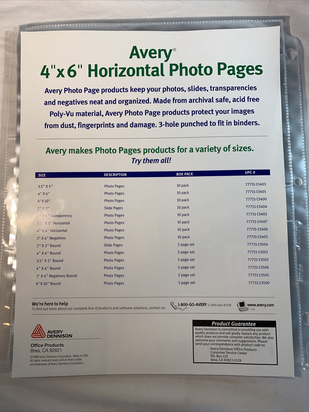 Avery Horizontal Photo Pages 10 Acid Free 4x6 13406 PP46H-10