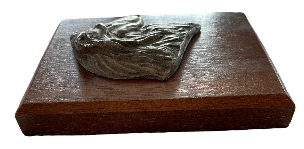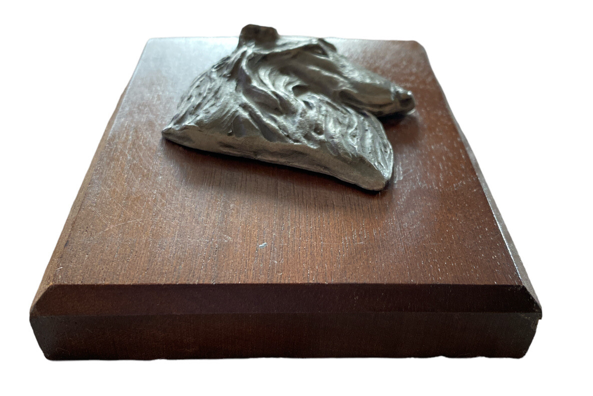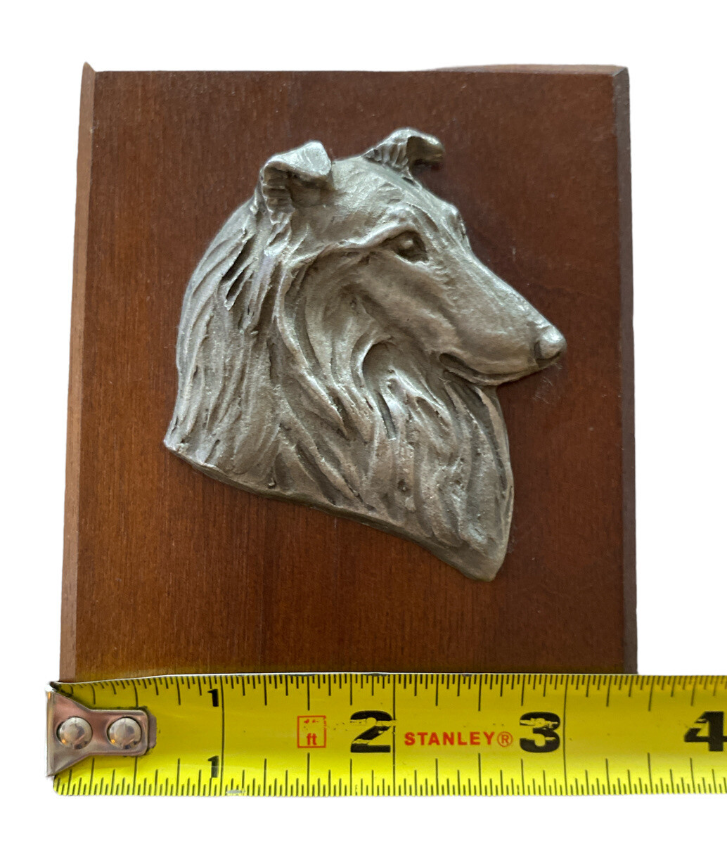 Louis Shattuck Signed Solid Pewter Collie Handcrafted Plaque Wood Wall Hanging