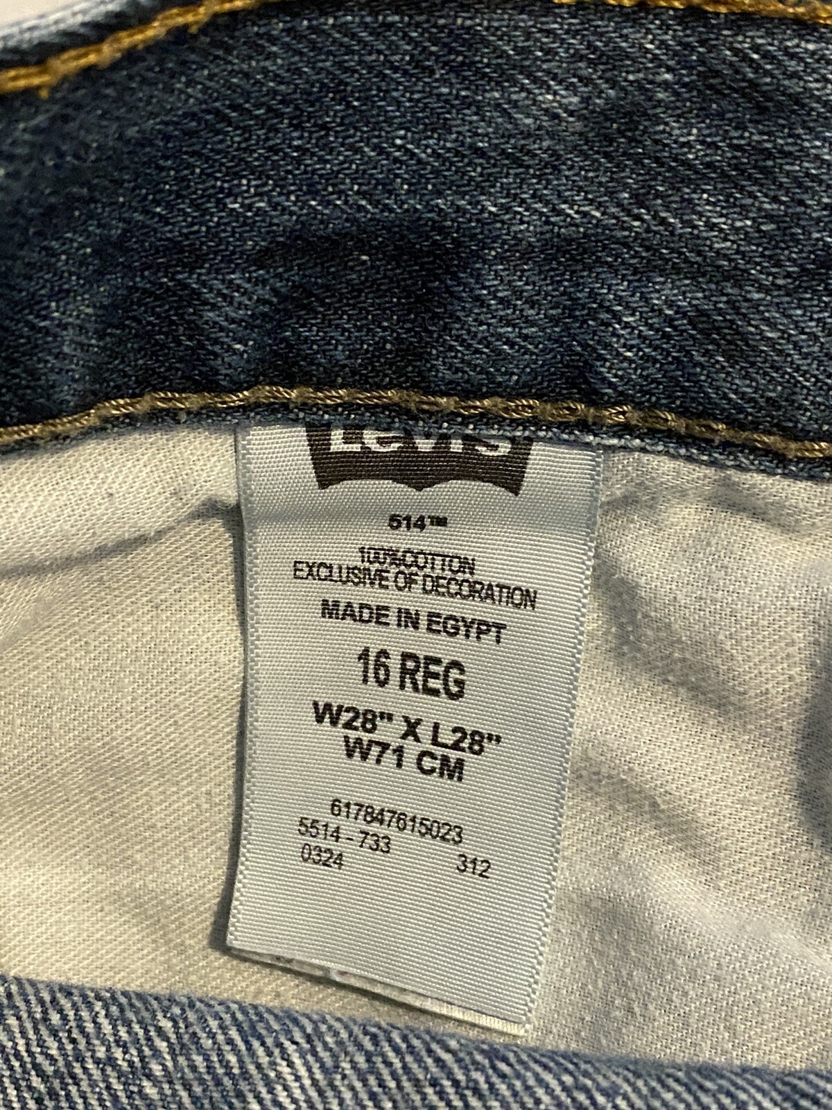 Levis 514 Mens Boys 16 Regular Slim Straight Leg 28x28 Blue Jeans Denim Cotton