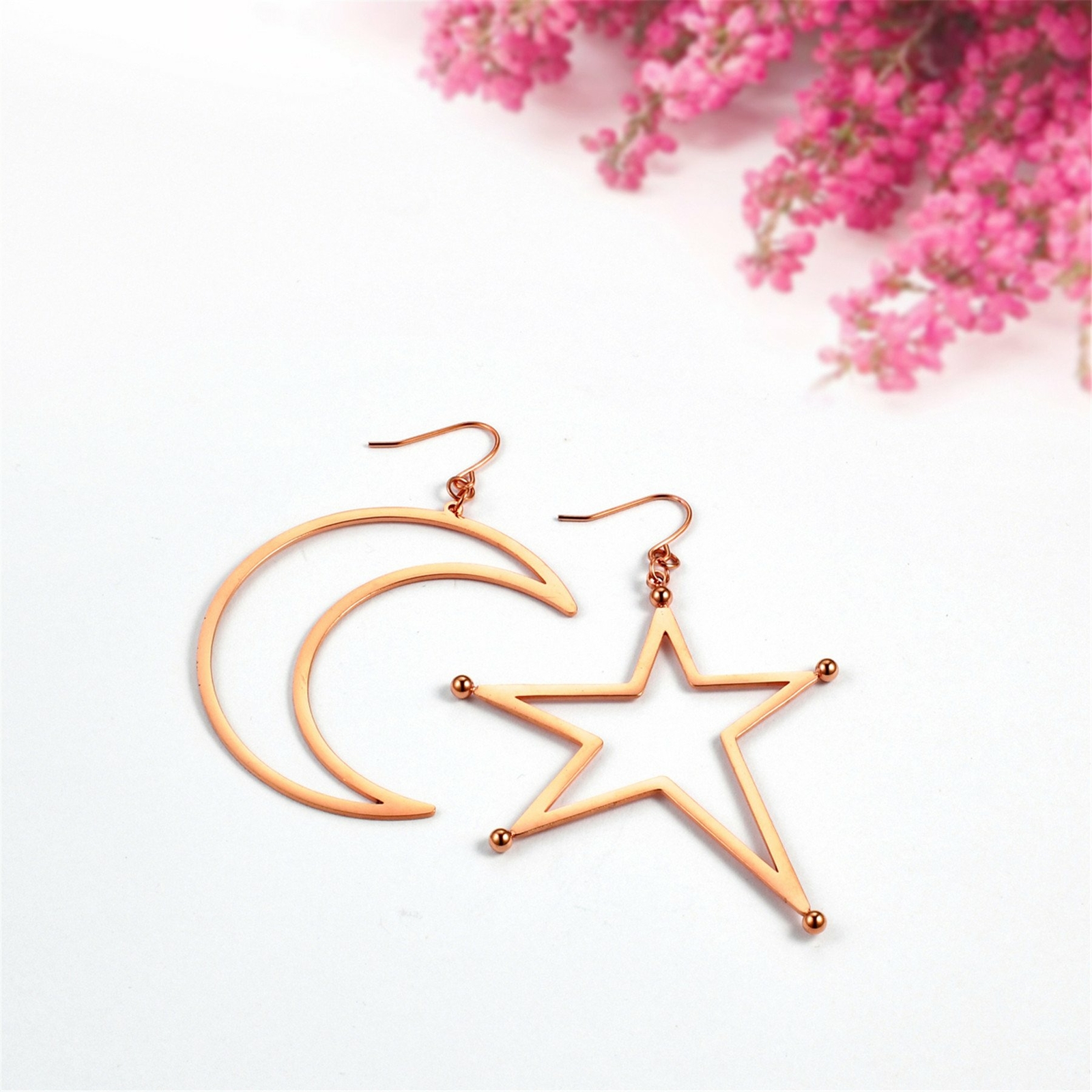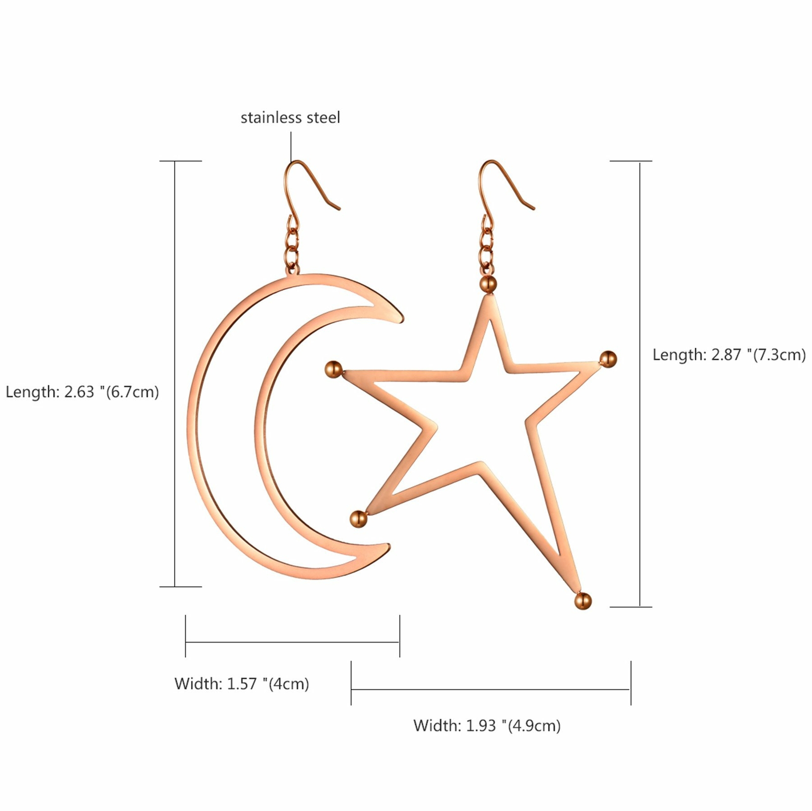 2pcs Women Girls Stainless Steel Moon Star Asymmetric Drop Dangle Hook Earrings