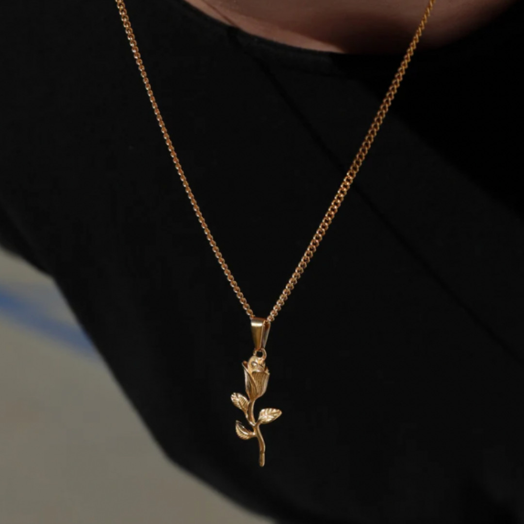 Rose Pendant Necklace 18k Gold Plated Stainless Steel