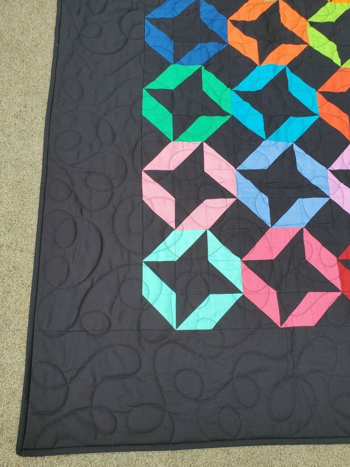 NEW Black-9-Patch Rainbow Stars Colorful Patchwork Quilt Lap/Throw 60x60 Vibrant