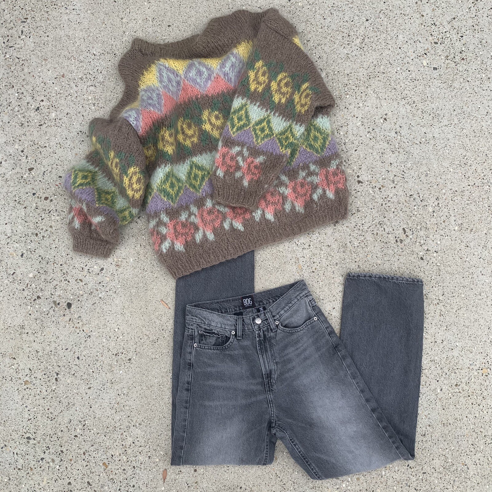 как выглядит vintage floral mohair wool pullover sweater фото