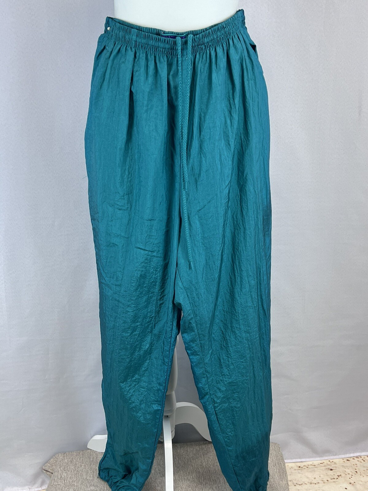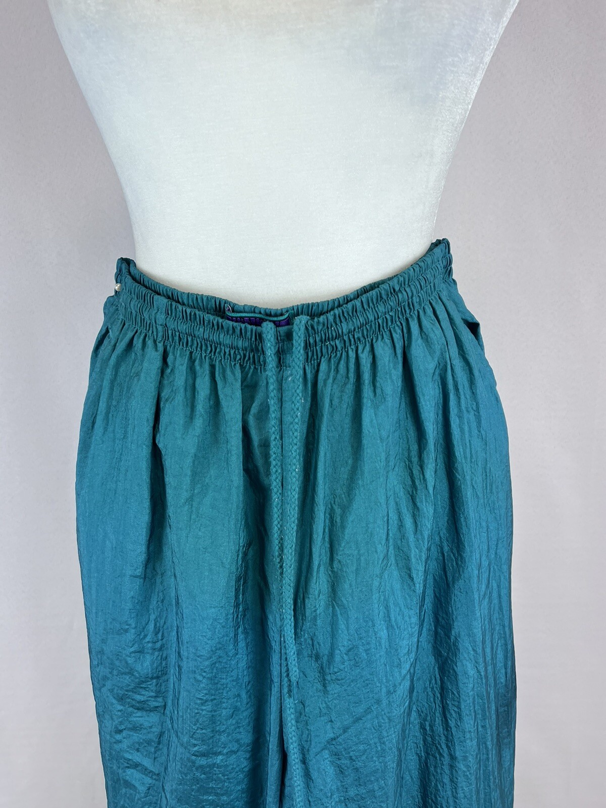 как выглядит Vintage 1980s Nylon Track Lounge Pants Elastic Drawstring Waist Fully Lined фото