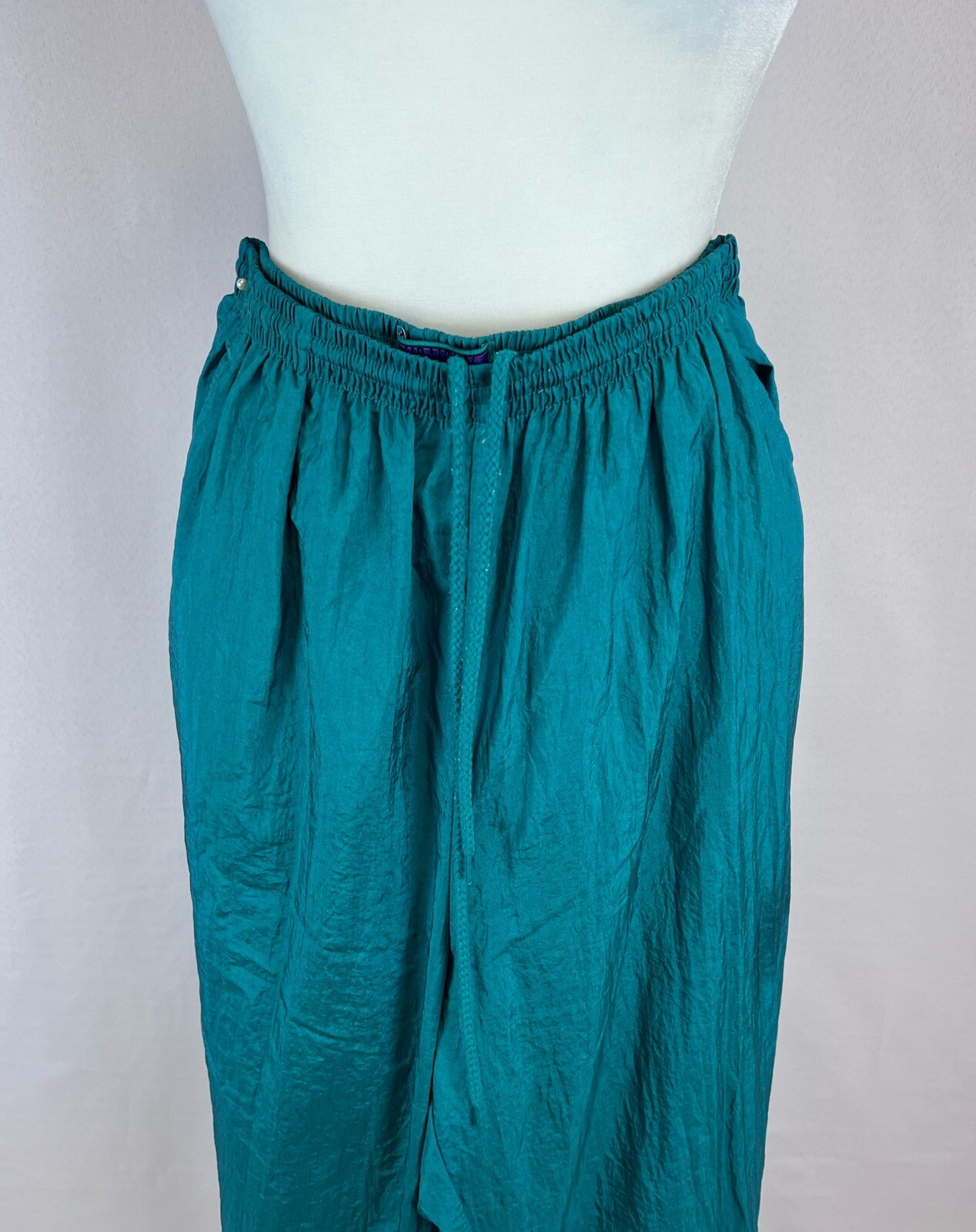Vintage 1980s Nylon Track Lounge Pants Elastic Drawstring Waist Fully Lined