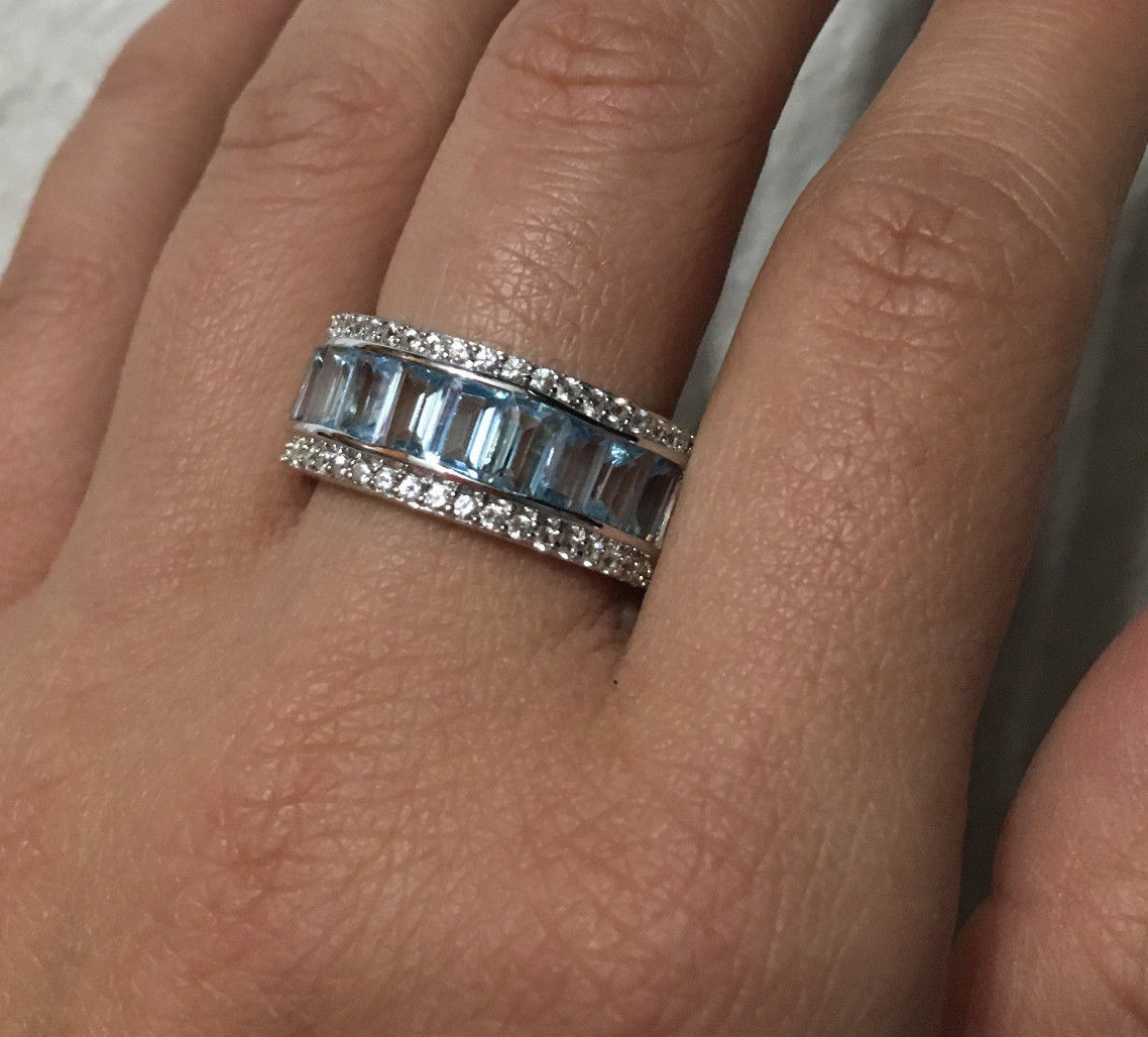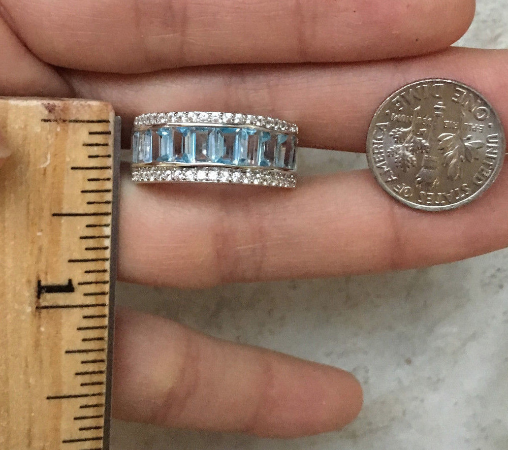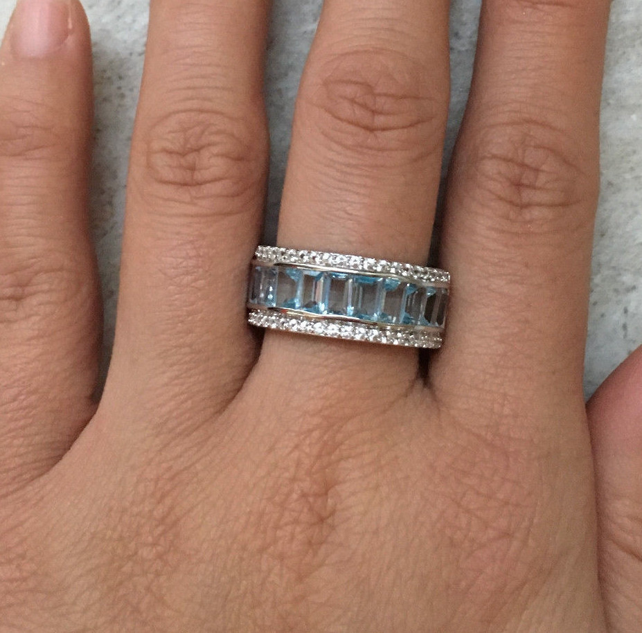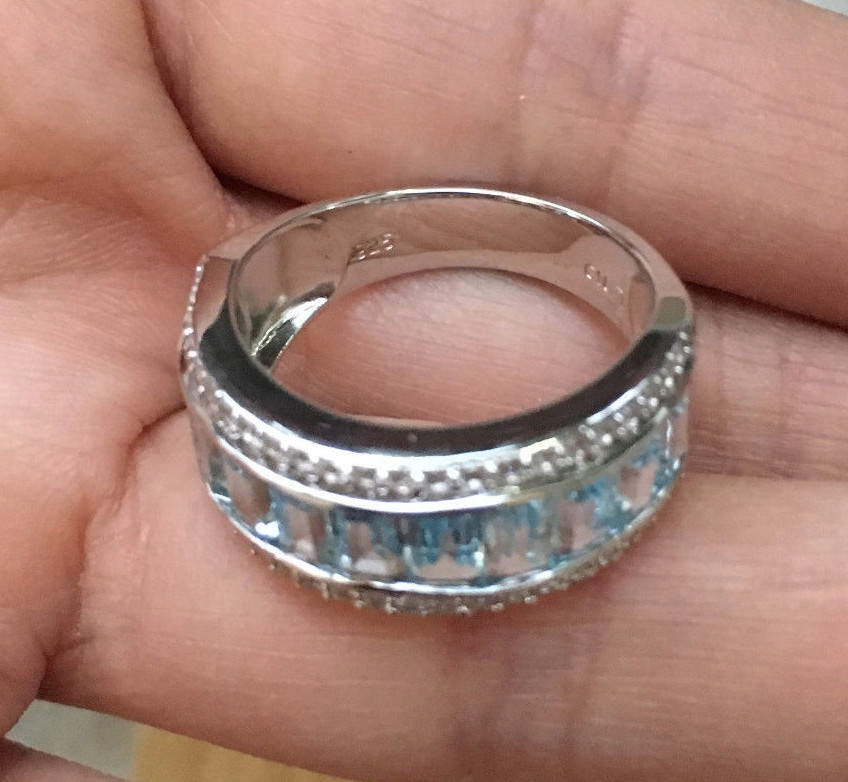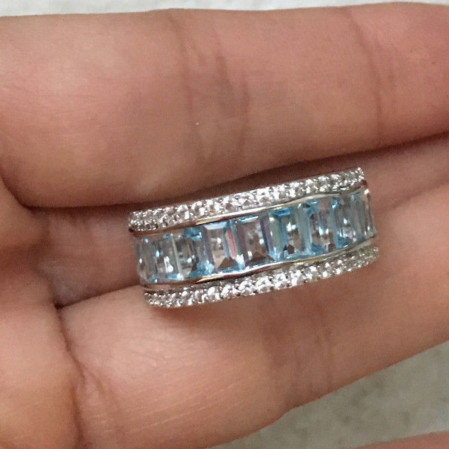 как выглядит 925 Sterling Silver Natural Blue Topaz Three Row Half Eternity Ring Band фото