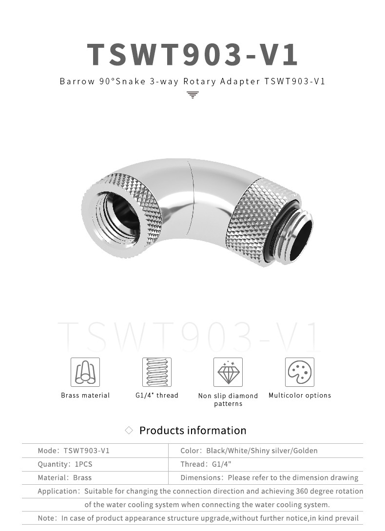 Barrow G1/4 90 Degree Male to Female Triple Rotary Snake Adaptor Swivel Silver