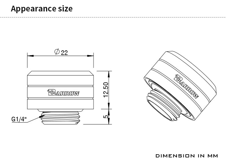 Barrow G1/4 to 14mm OD Hard Tubing Compression Fitting Smooth Finish Black