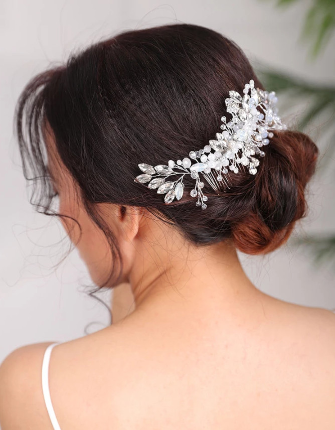 как выглядит H5 Wedding Hair Comb - Silver Wire Crystals Beautiful Trendy Women Bridal Pins фото