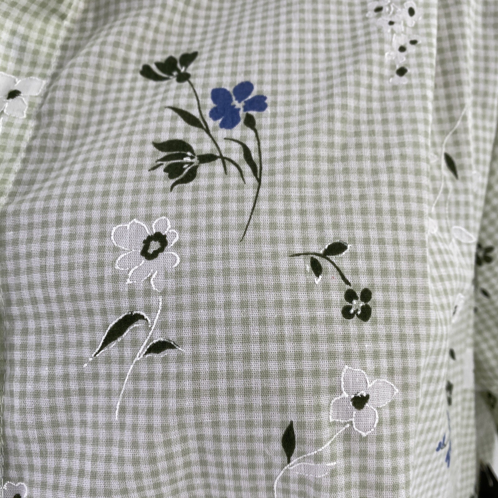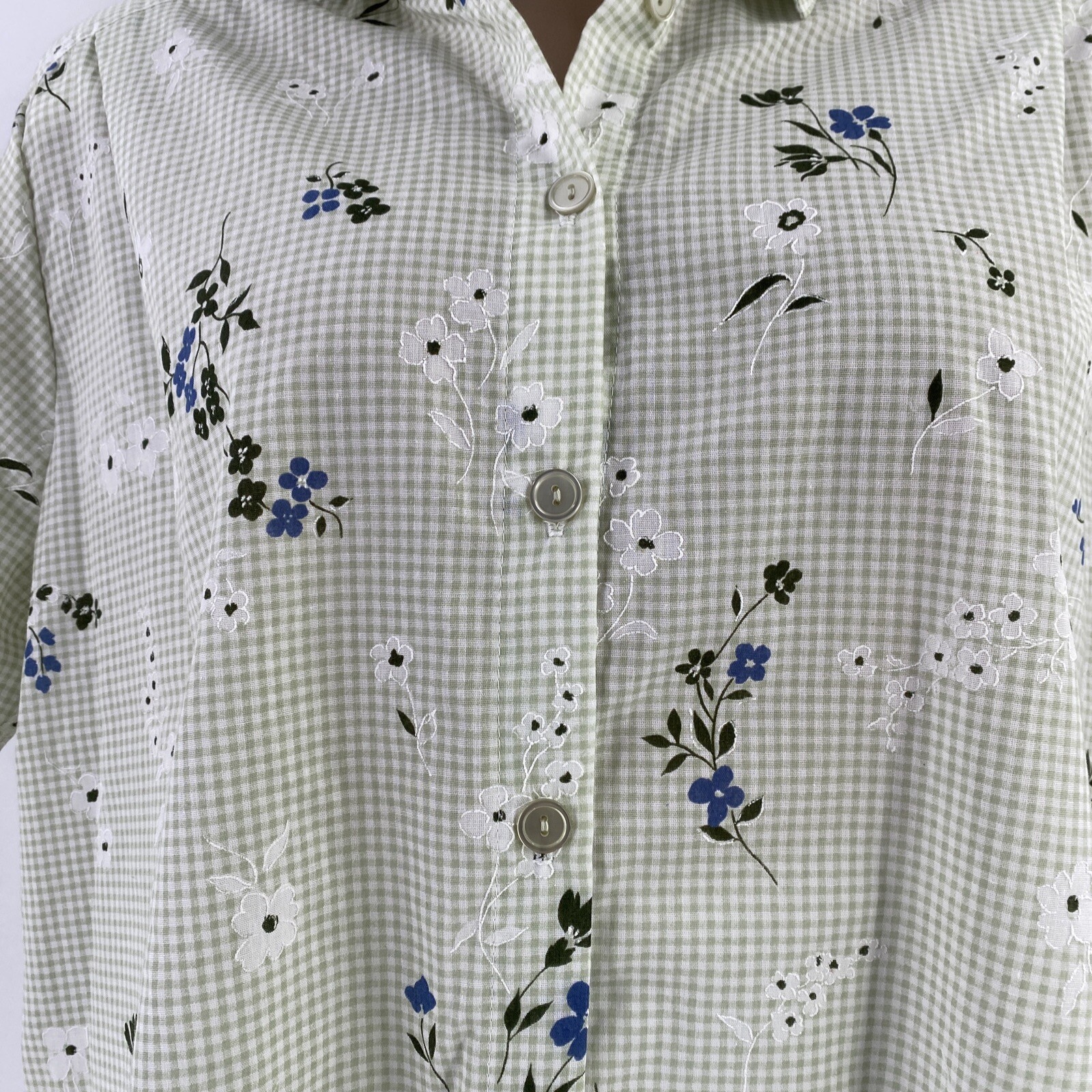 как выглядит Vtg TCP Woman Blouse 20W Cottage Core Green White Check Floral Button Front фото