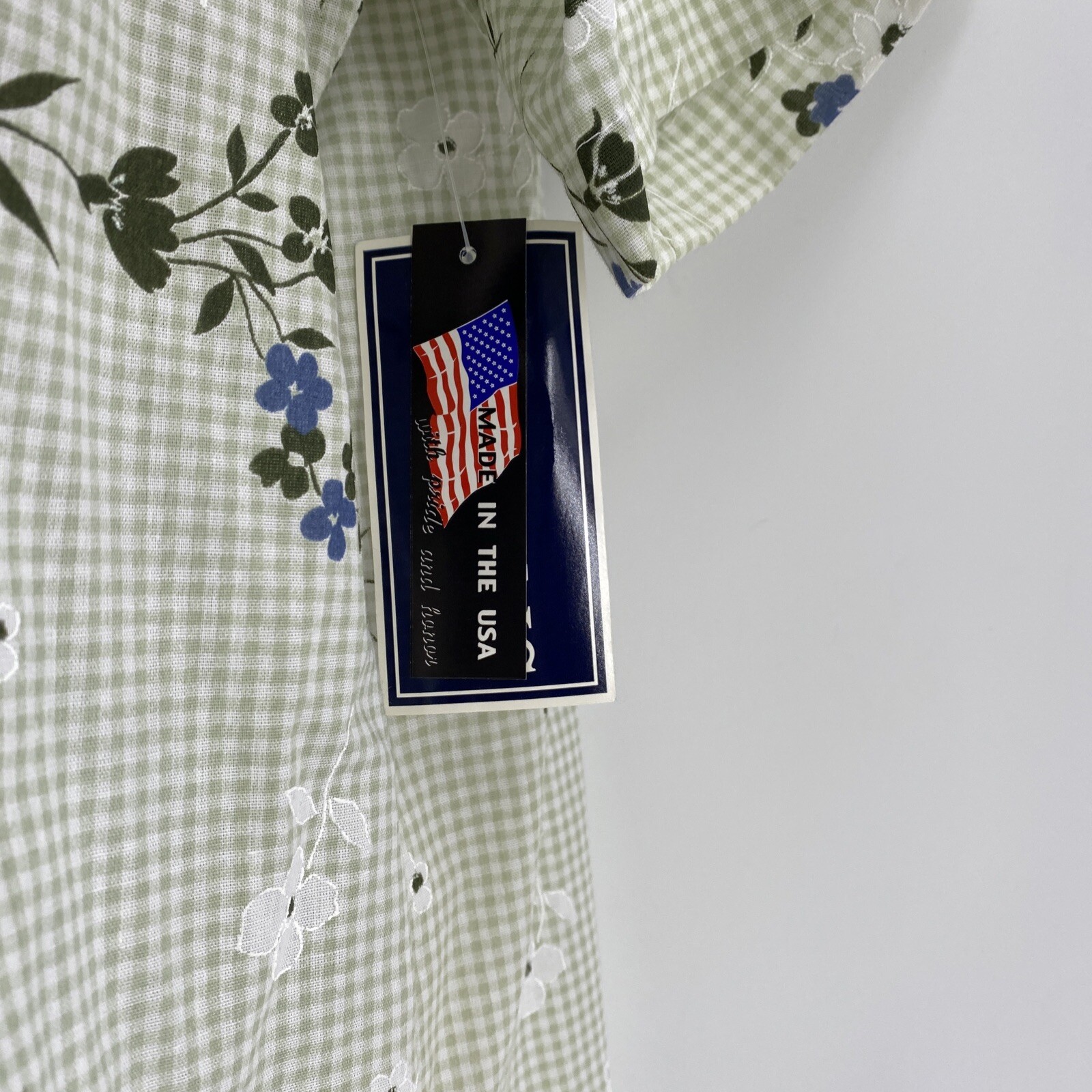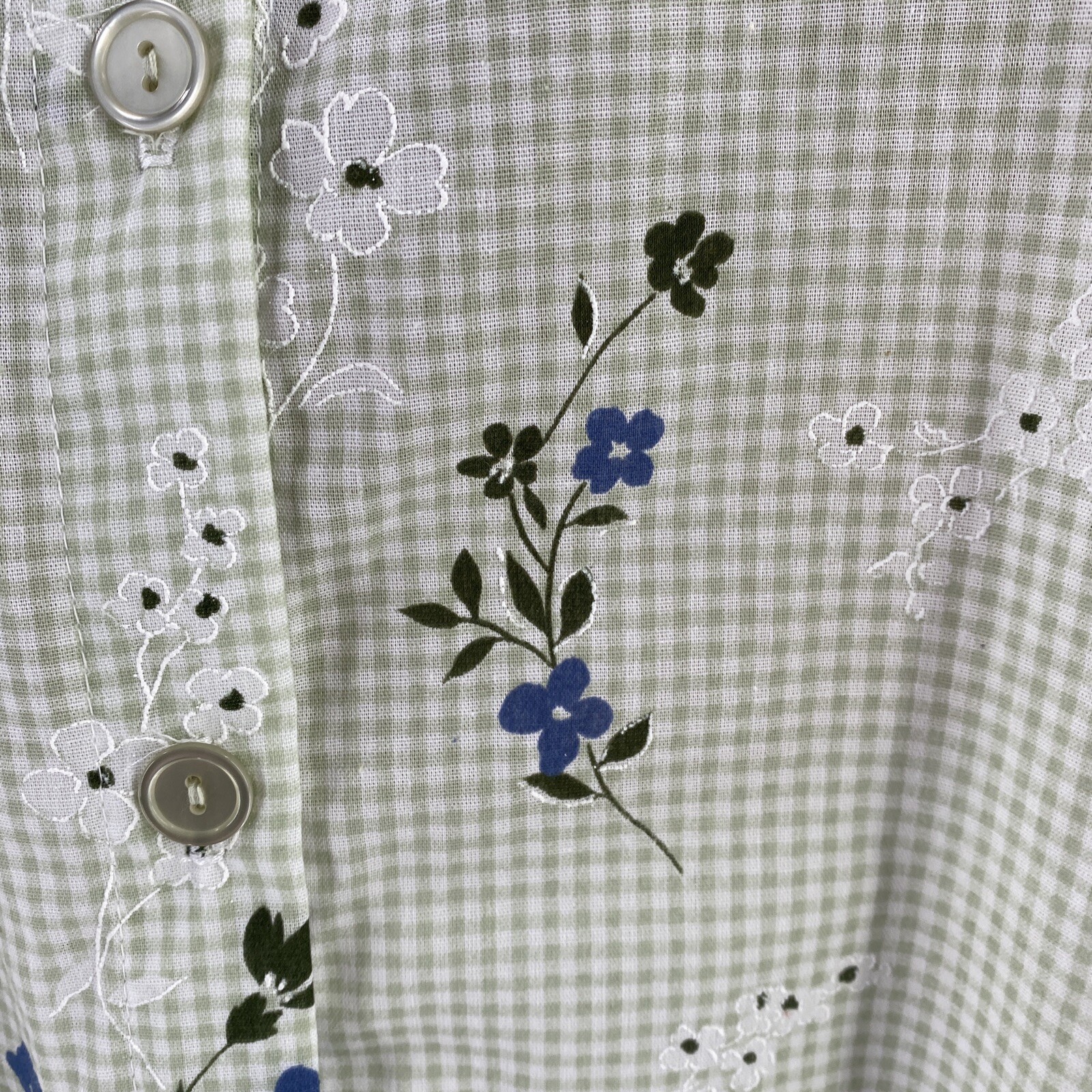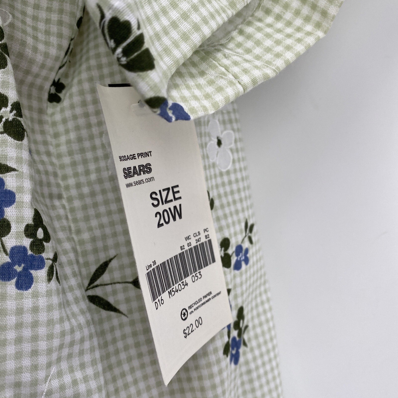Vtg TCP Woman Blouse 20W Cottage Core Green White Check Floral Button Front