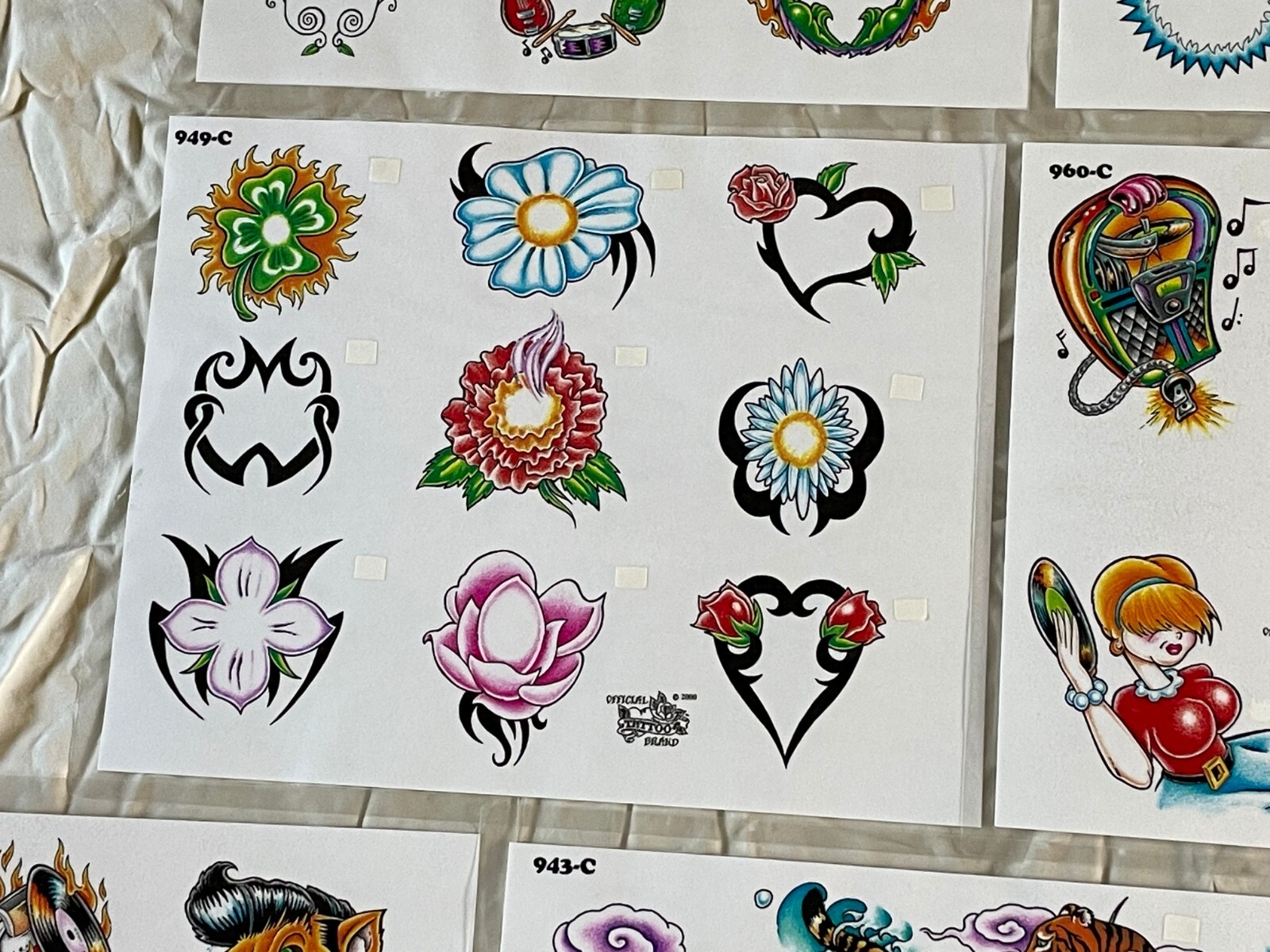Lot of 10 Vintage Official Tattoo Brand Flash Sheets //T4//