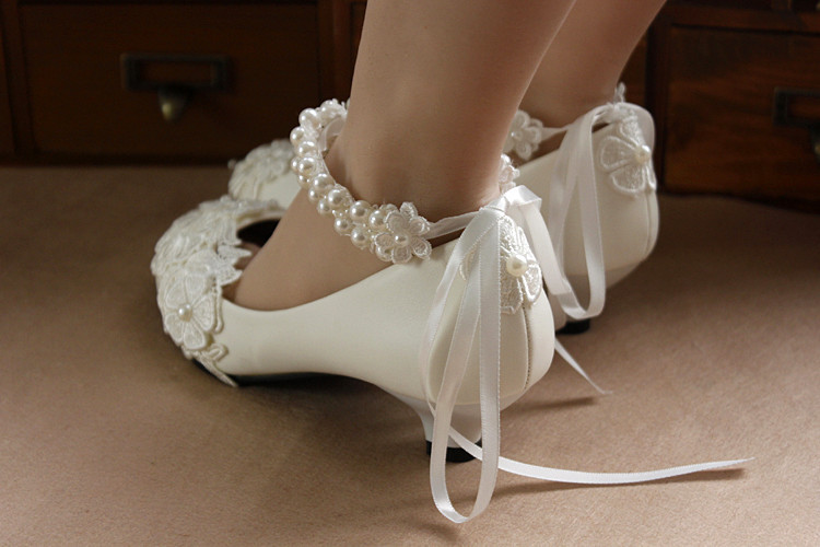 как выглядит Gorgeous Flower Wedding Lace Prom Bridal Bridesmaid Flat High Low Heels shoes фото