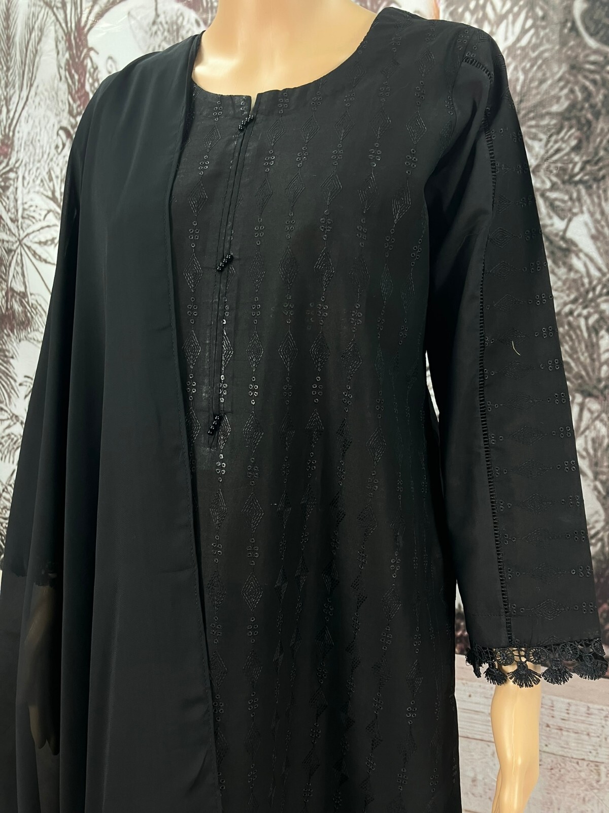 KALYAN BLACK CHIKAN LAWN Collection 3 PIECE SUIT READY TO WEAR