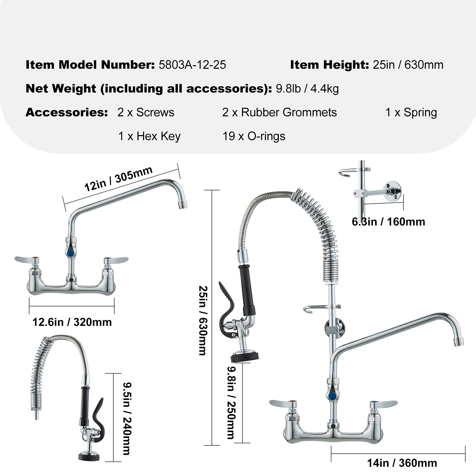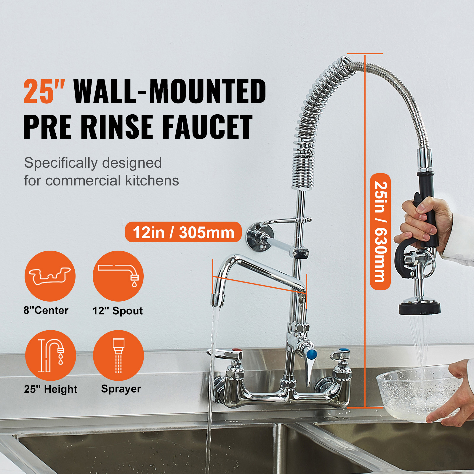 21-47 Commercial Pre-rinse Faucet Wall Mount Sink Faucet 8 w/ Sprayer