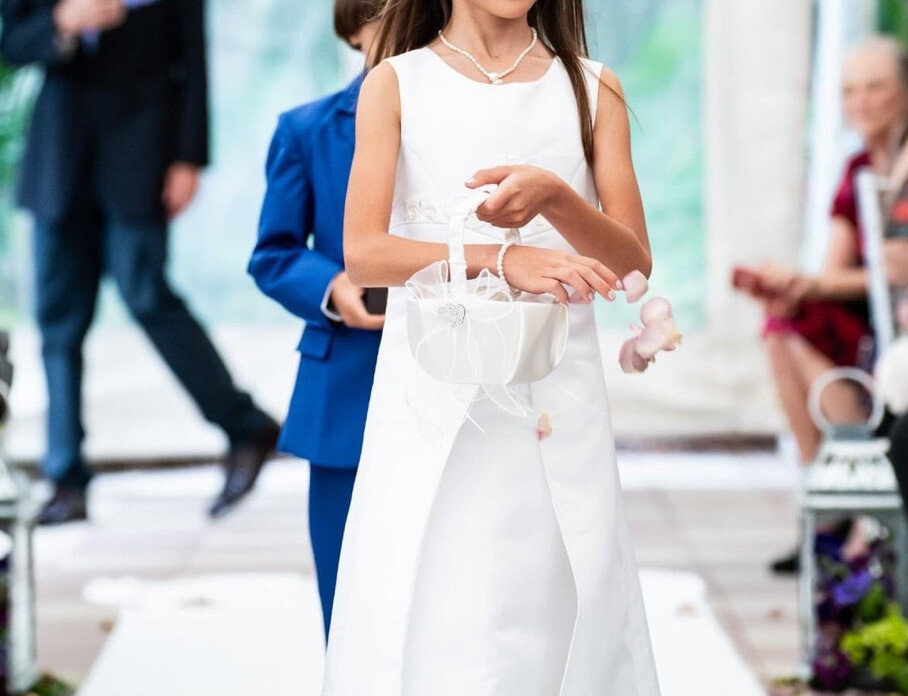 Flower Girl Long Dress Size 7 - Girl 6-8 Years Old- White Embroidery diamonds