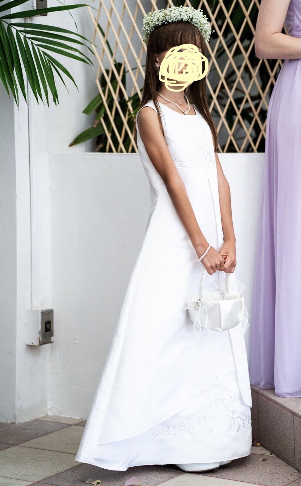 как выглядит Flower Girl Long Dress Size 7 - Girl 6-8 Years Old- White Embroidery diamonds фото