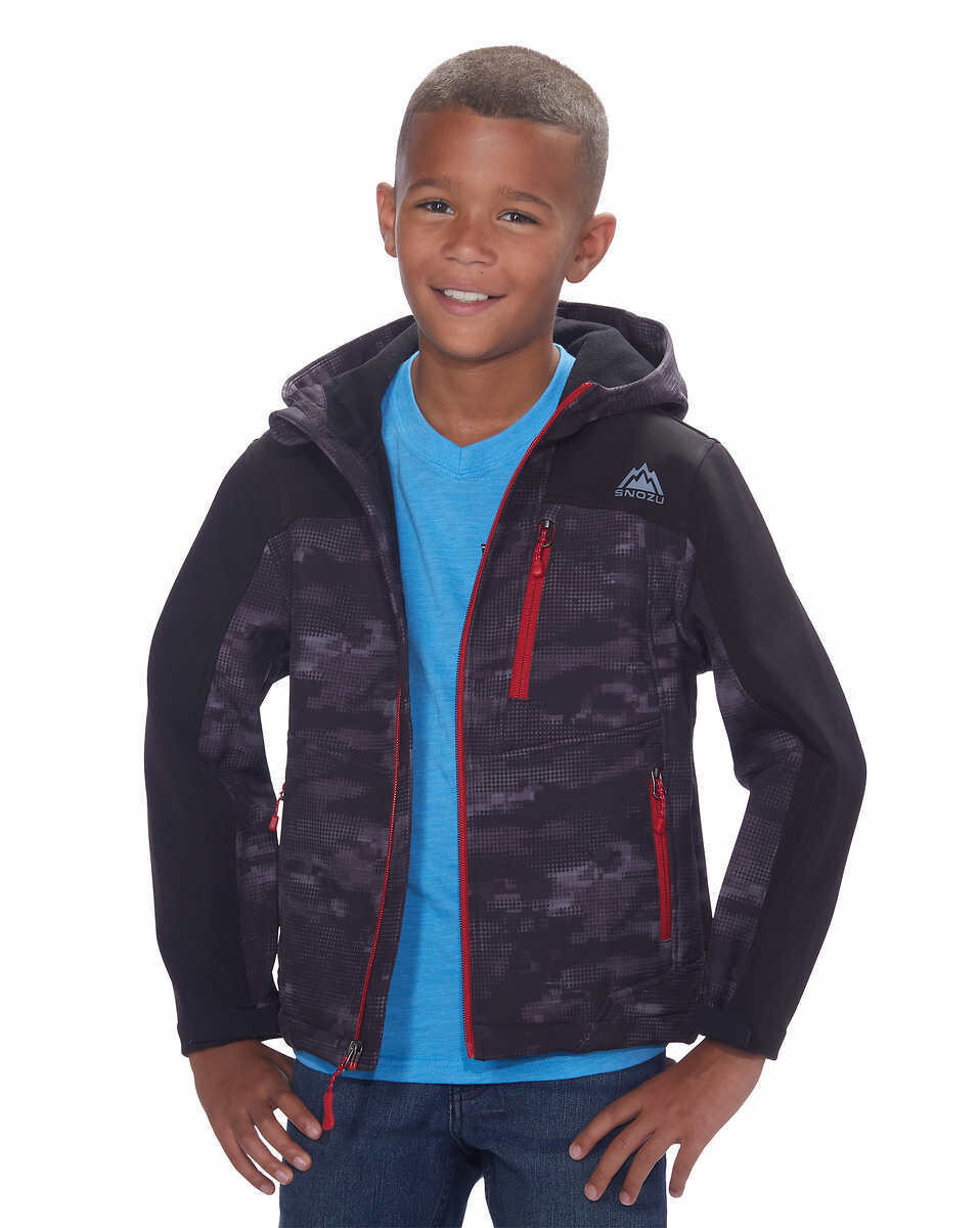 Snozu Boys Softshell Hooded Jacket Black Dot Camo X-Small 5/6
