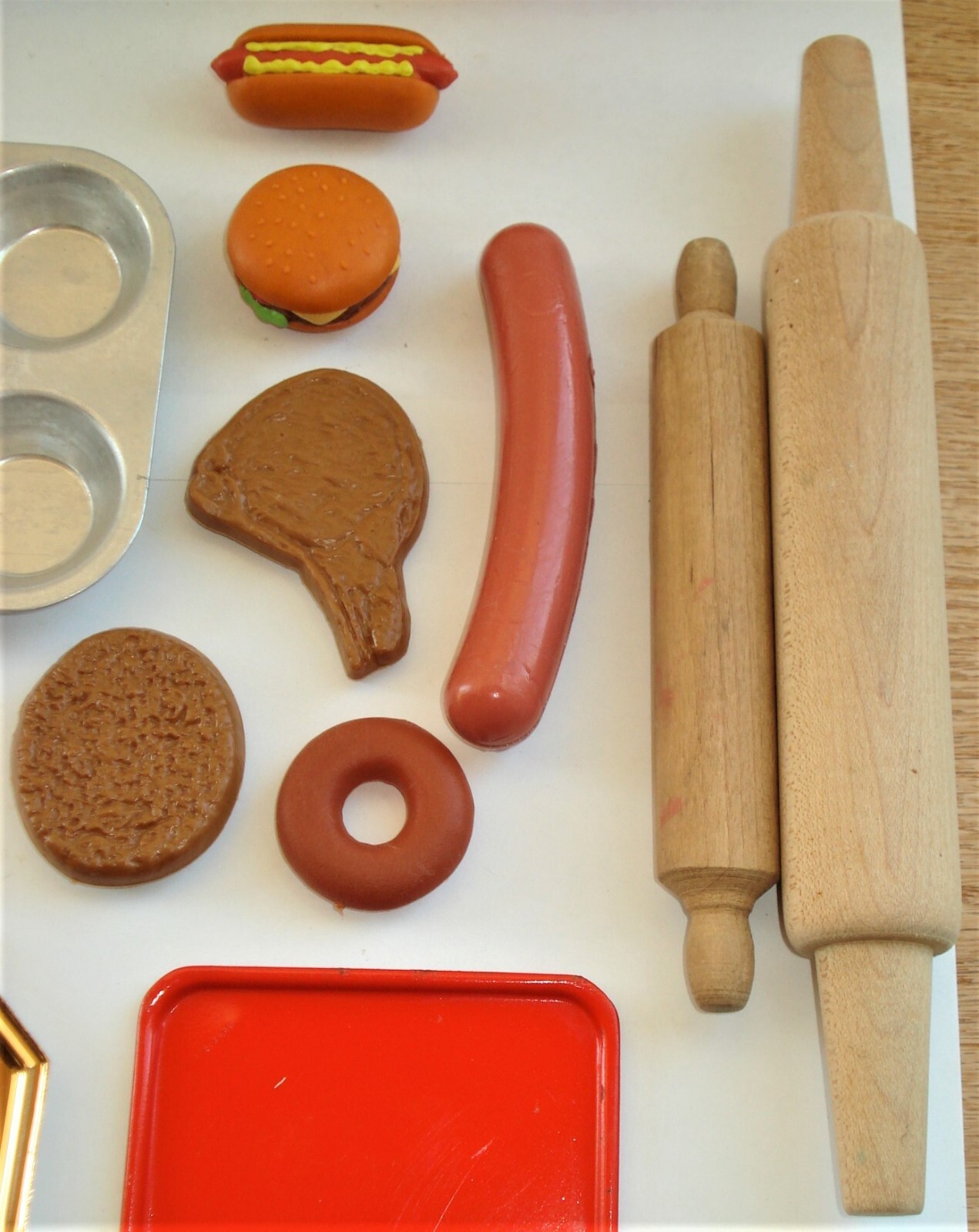 Vintage Lot Childs Kids Toy Pots, Bowls, Food, Rolling Pins, Angel Food Cake Pan