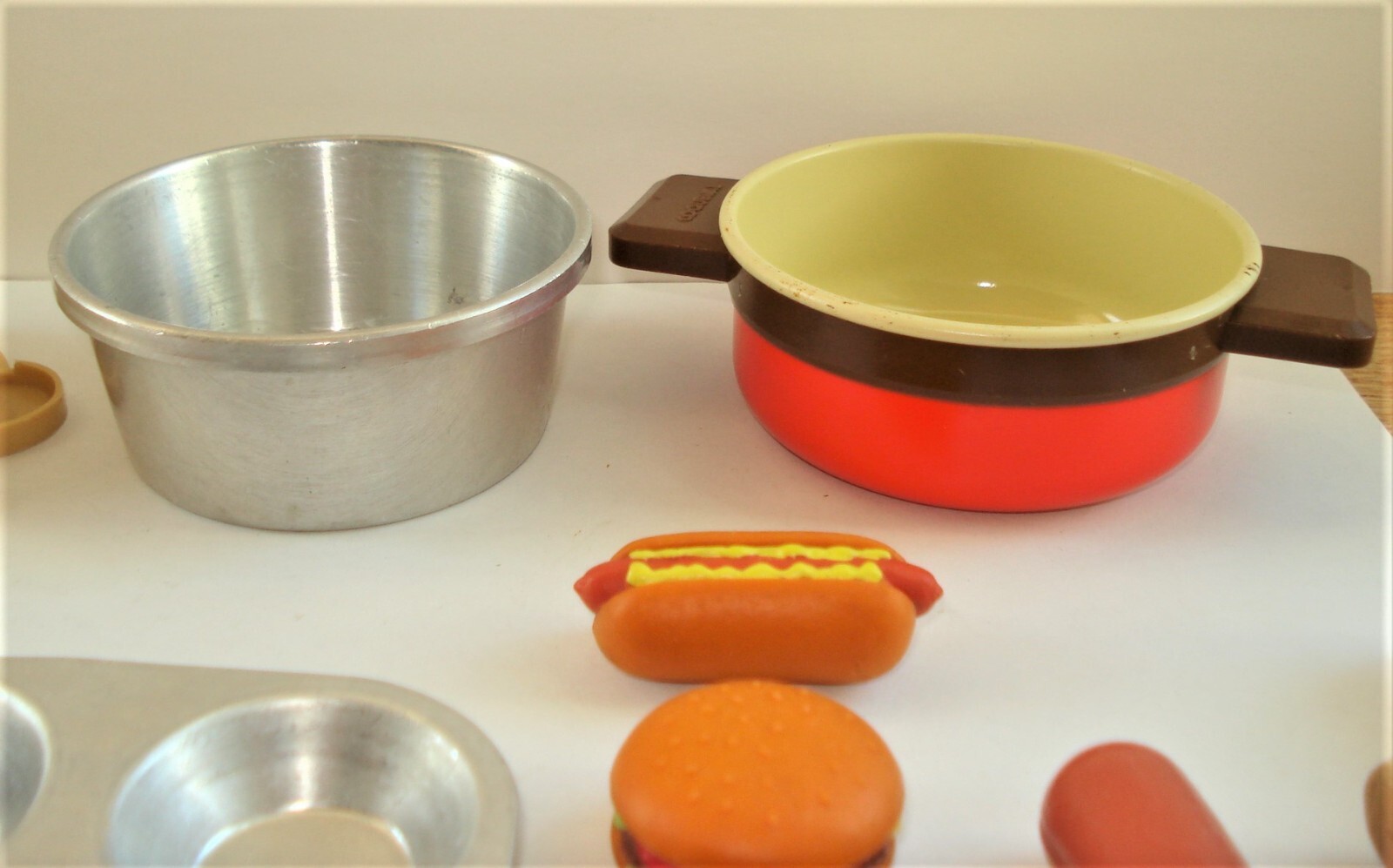 как выглядит Vintage Lot Childs Kids Toy Pots, Bowls, Food, Rolling Pins, Angel Food Cake Pan фото