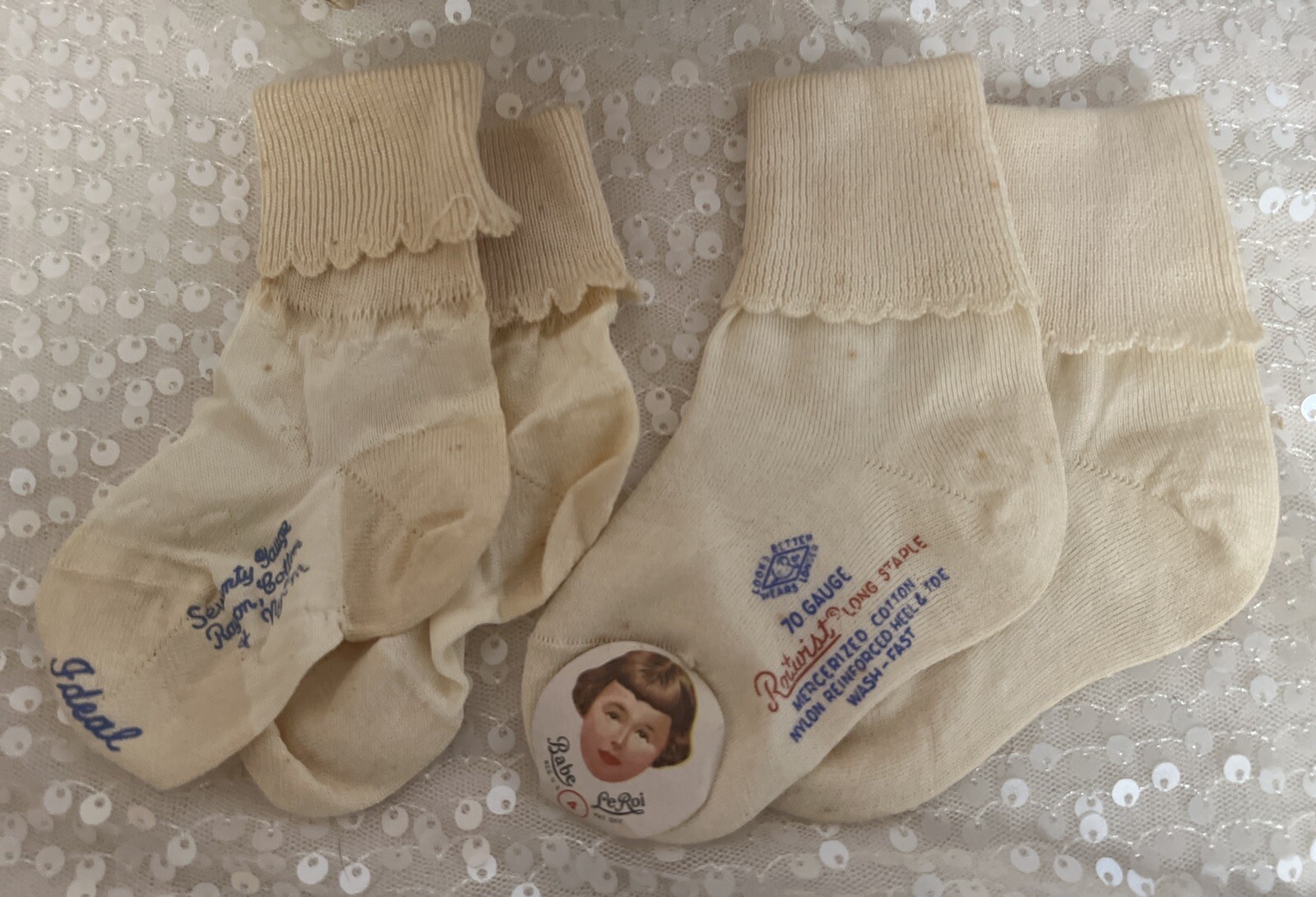 как выглядит Vintage 1940s Shoes Babe LeRoi Pair of White Socks NEW W/ Tags Ideal Shoe Co фото