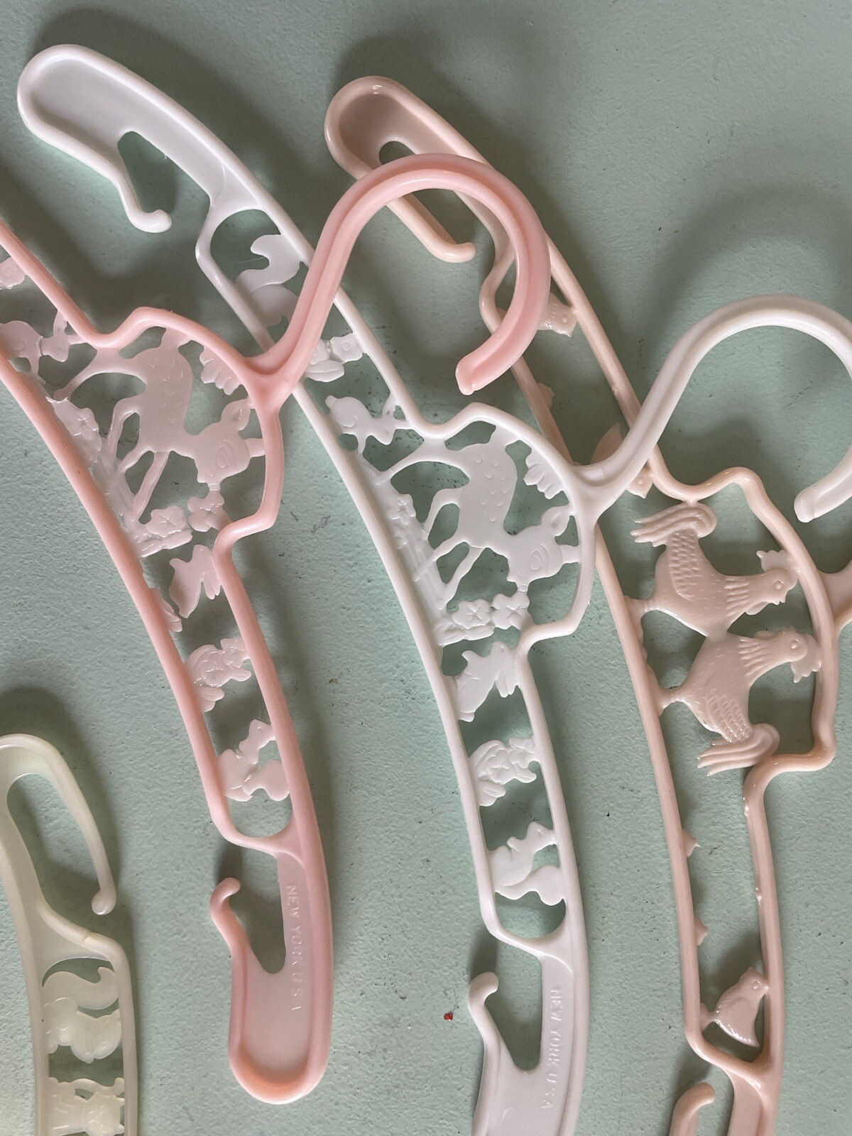 как выглядит Set Of 4 Vintage Plastic Hangers Pink White фото