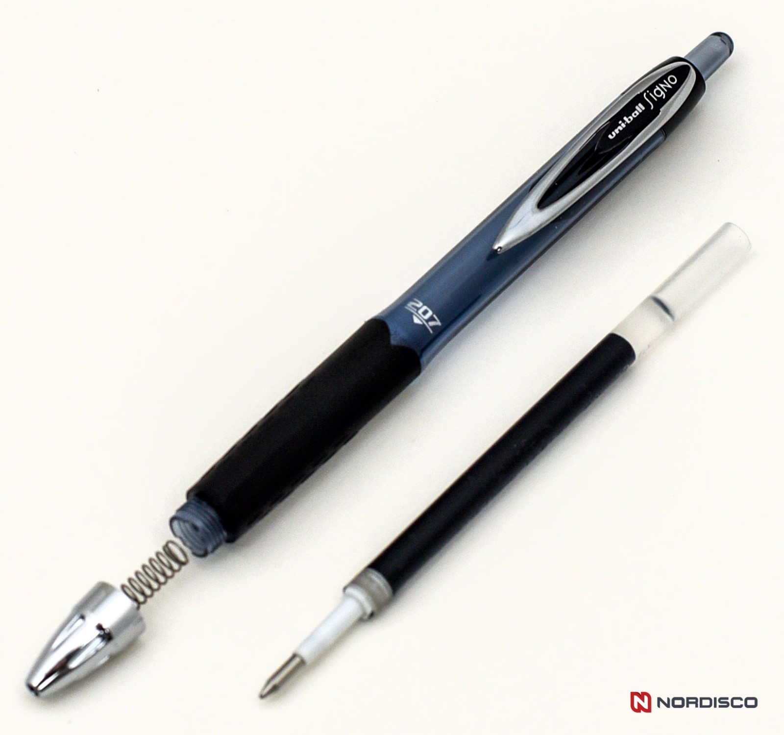 как выглядит Uni-Ball Signo 207 33950 Black Gel Ink 0.7mm Medium Pt Rollerball Pen Box of 12 фото