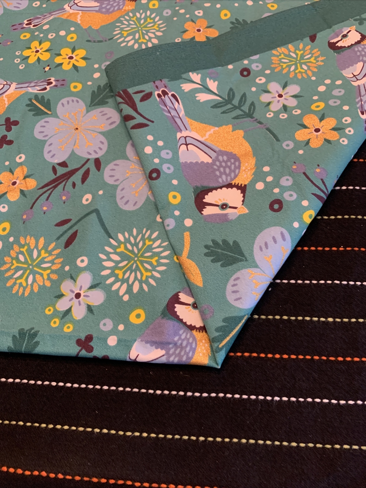 • Tea Towel by Birdy Turquoise with birds and yellow flowers Super Cute