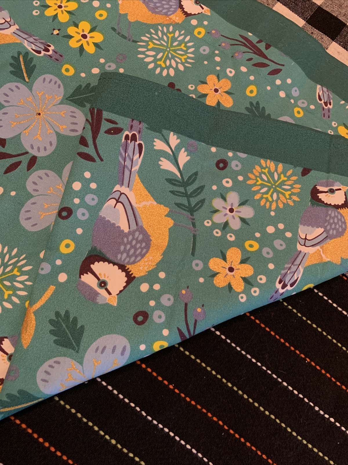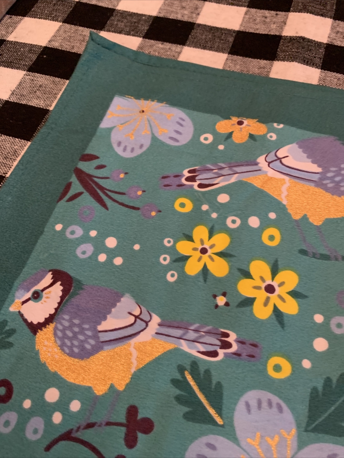 как выглядит Tea Towel by Birdy Turquoise with birds and yellow flowers Super Cute фото