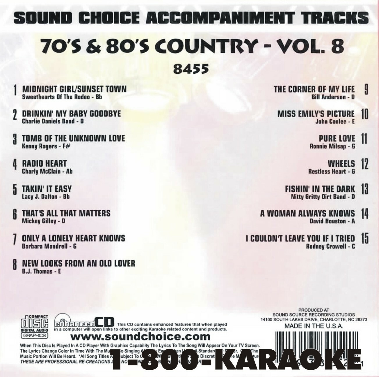 SOUND CHOICE KARAOKE 70's 80's COUNTRY v.8 cdg CD G SC8455 RARE 15 SONG OOP