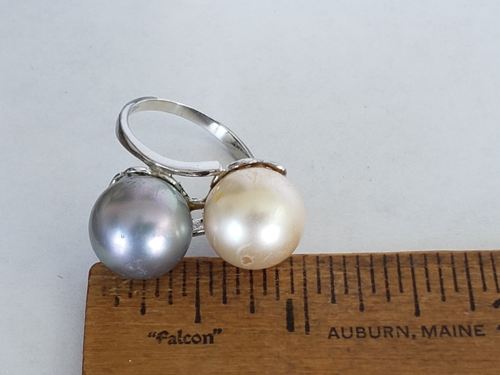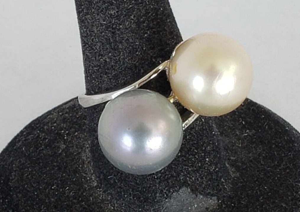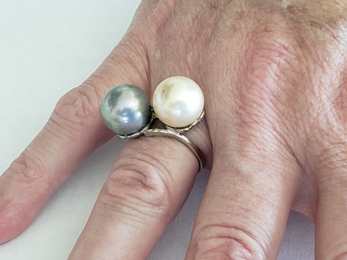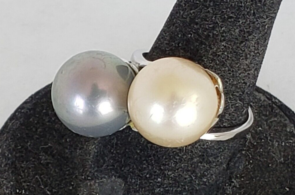 как выглядит Vintage Sterling Silver Large Faux Pearls Ring - Sz 7 фото