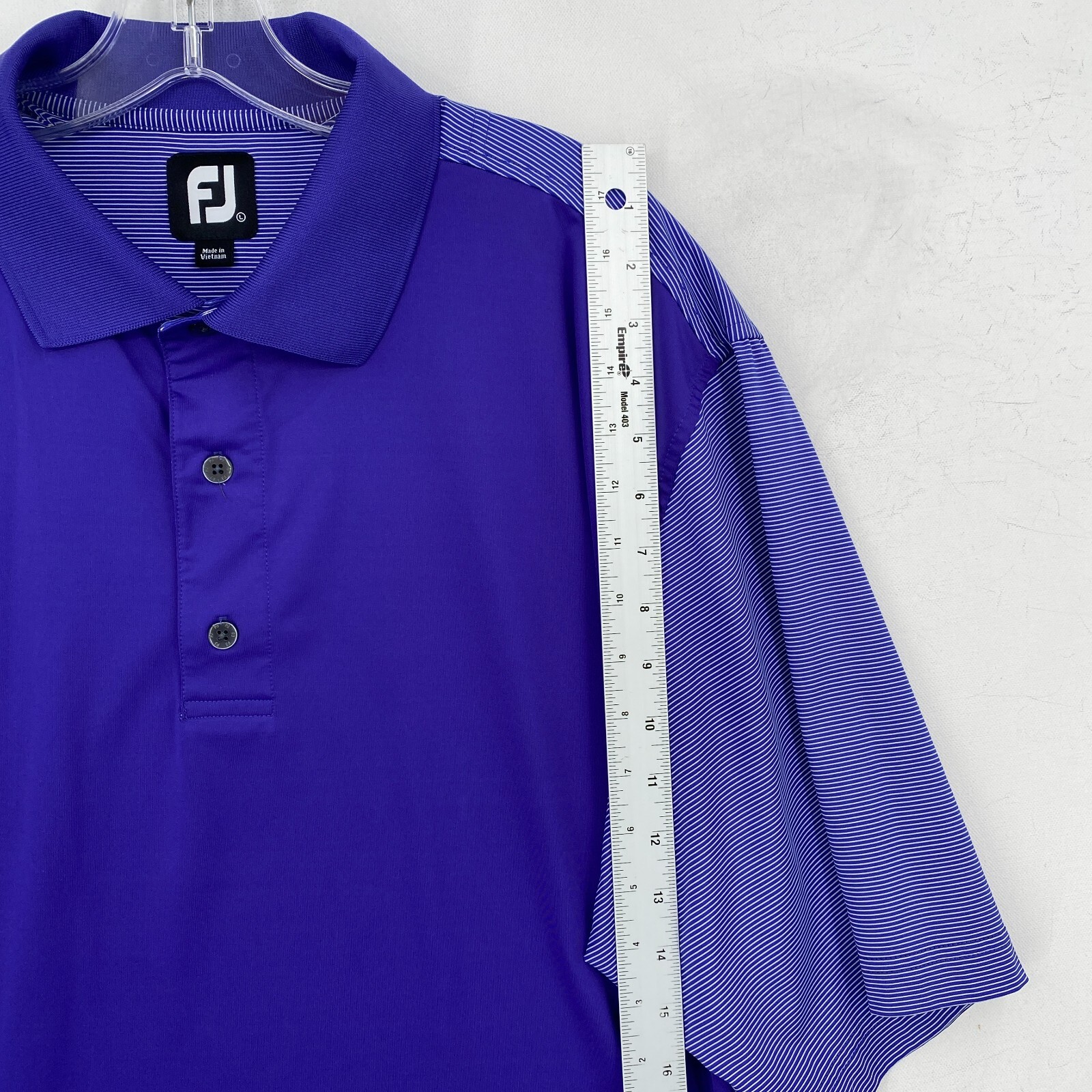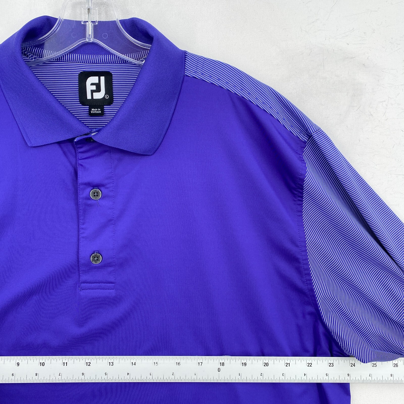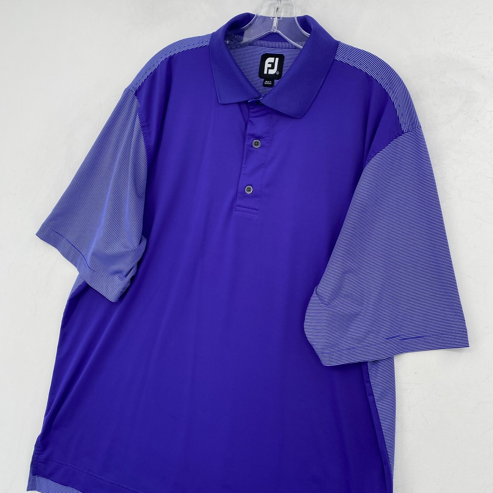 FJ FootJoy Polo Shirt Mens Large L Blue Striped Short Sleeve Golf Quickdry