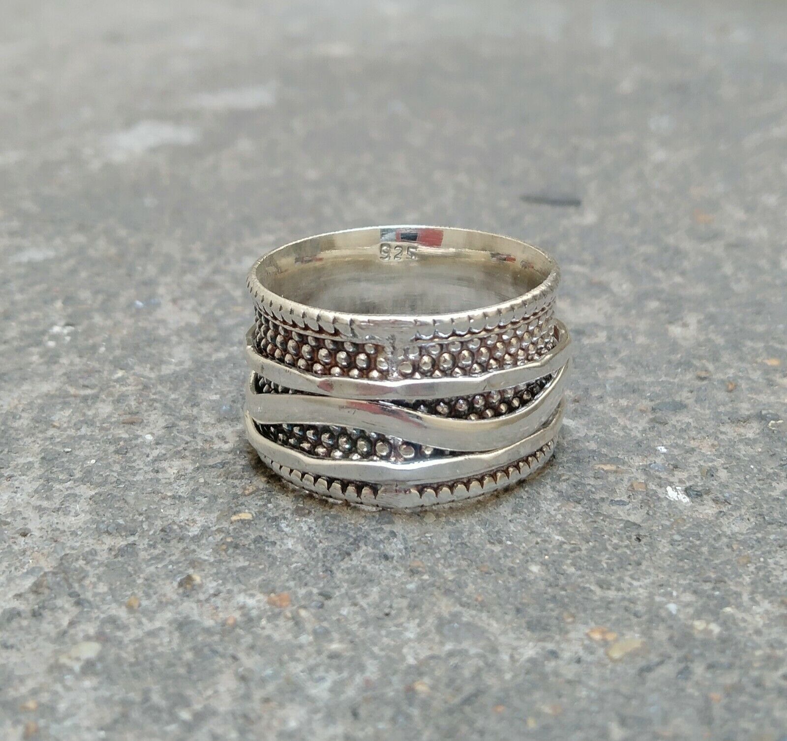 Solid 925 Sterling Silver Spinner Ring Band Statement Handmade Ring All Size