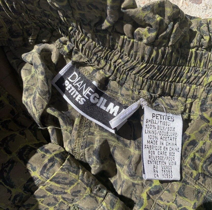 как выглядит Amazing Diane Gilman green reptile print silk gaucho shorts sz s фото