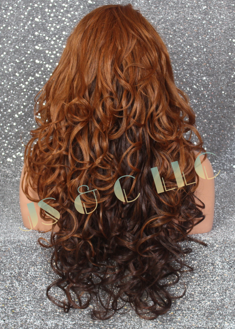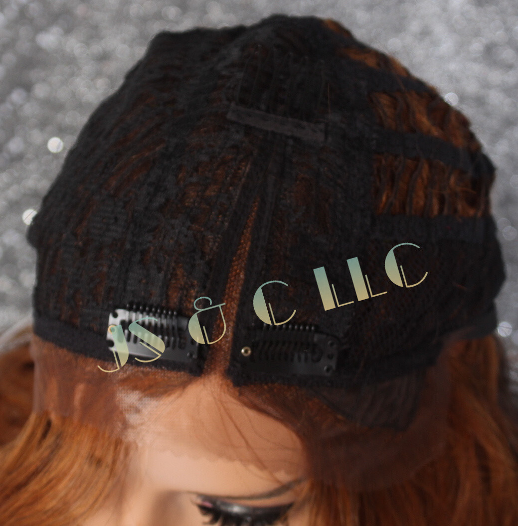 Human Hair Blend Full Lace Front Wig Wavy Ginger Red Auburn mixed Heat OK WBSAH