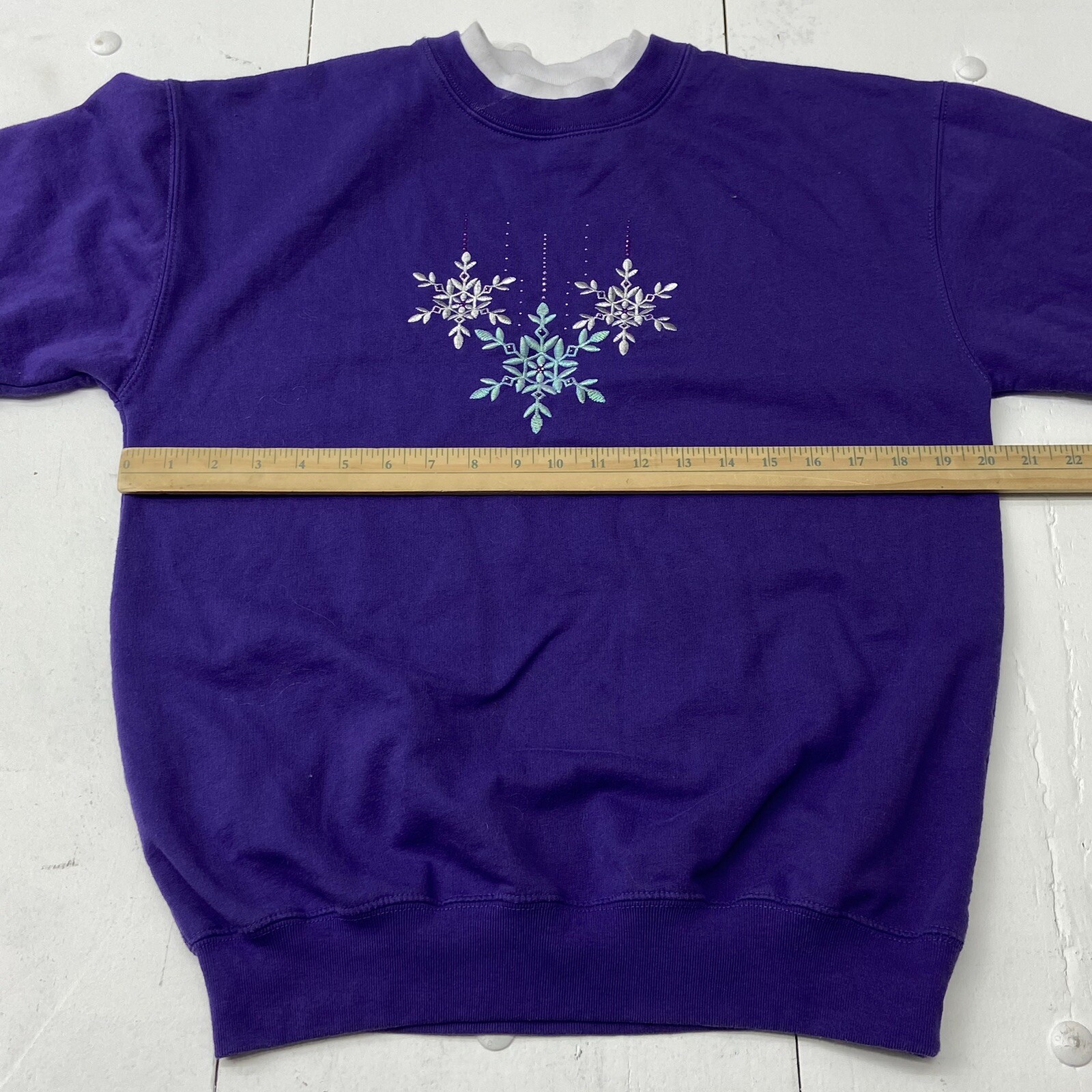 как выглядит Vintage M C Sportswear Purple Christmas Holiday Sweater Snowflakes Women Size M фото