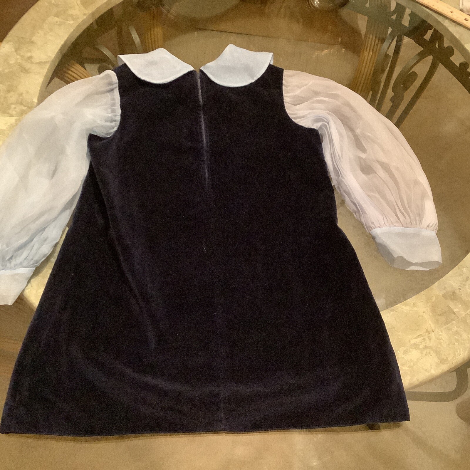 как выглядит Vintage Tiny Town Togs Girls Dress Navy Velvet Plush/Chiffon sleeves/Collar 7/8 фото