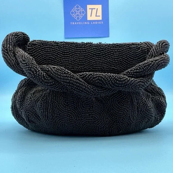 VTG 1940s K G Charlet Black Beaded Evening Bag and Twisted Rope Handle