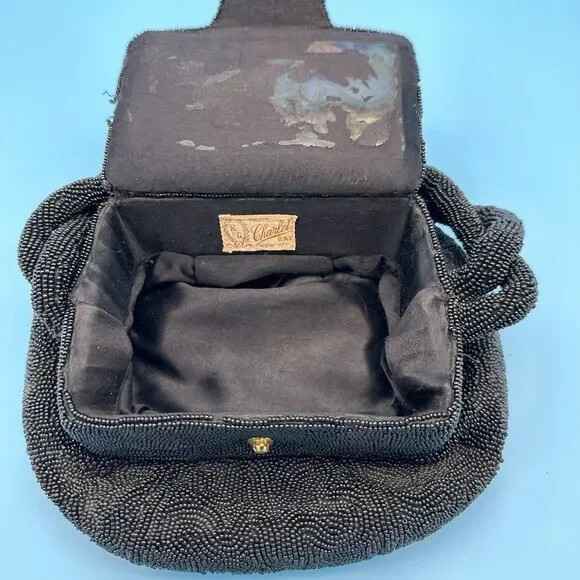 как выглядит VTG 1940s K G Charlet Black Beaded Evening Bag and Twisted Rope Handle фото