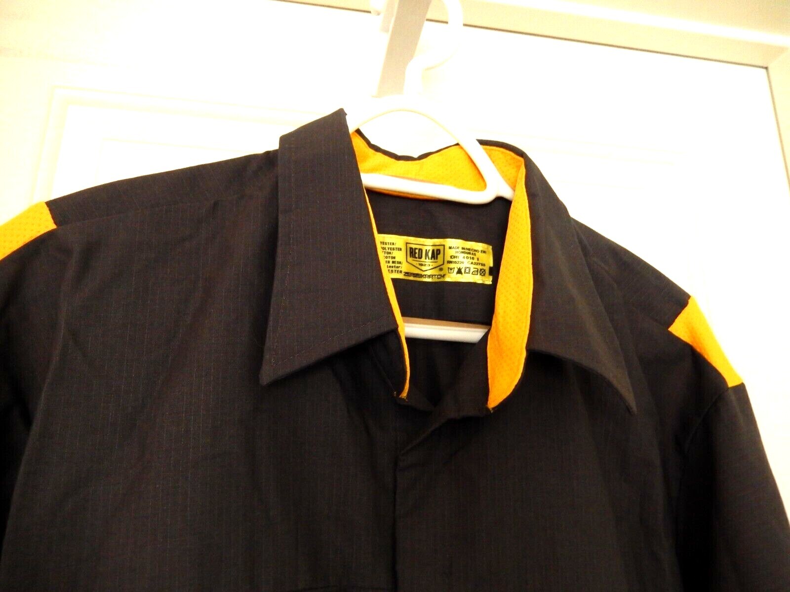 как выглядит RED KAP Performance Plus Shop Shirt w Oilblock Technology-L charcoal/yellow mesh фото