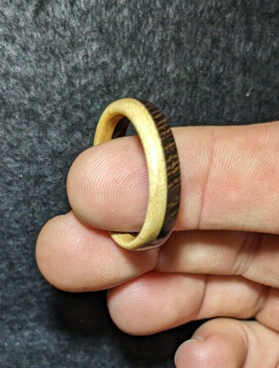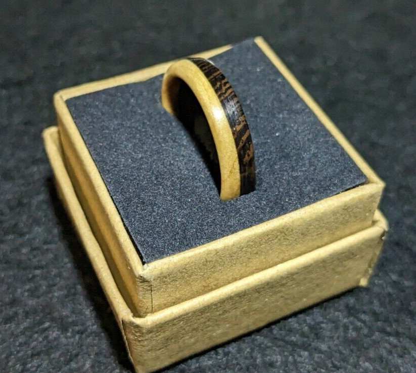 Handmade Wenge and Maple Wood Ring Size 10 1/4