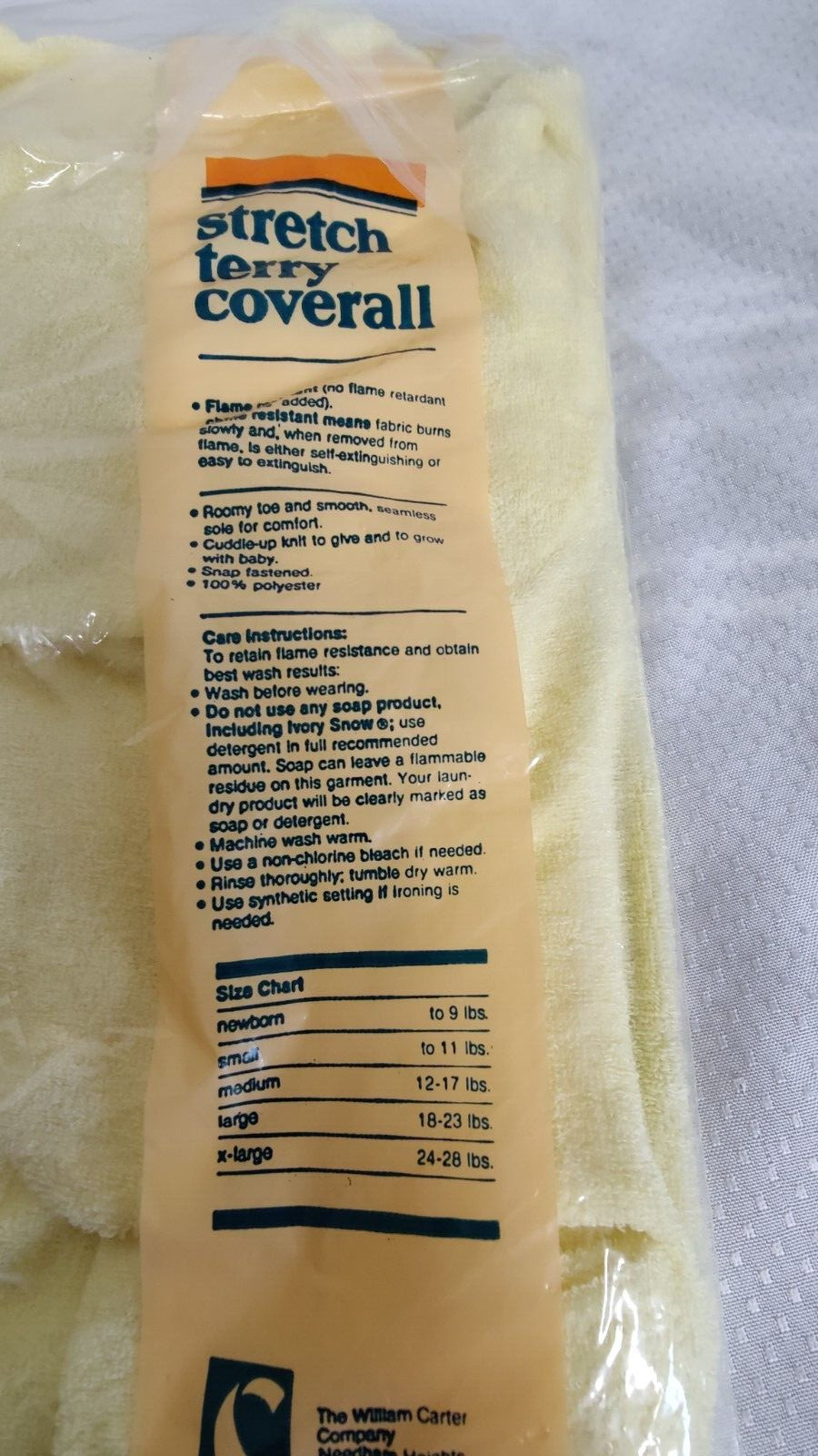 как выглядит Vintage Carters Baby Stretch Terry Coverall Yellow Large Mervyns New фото