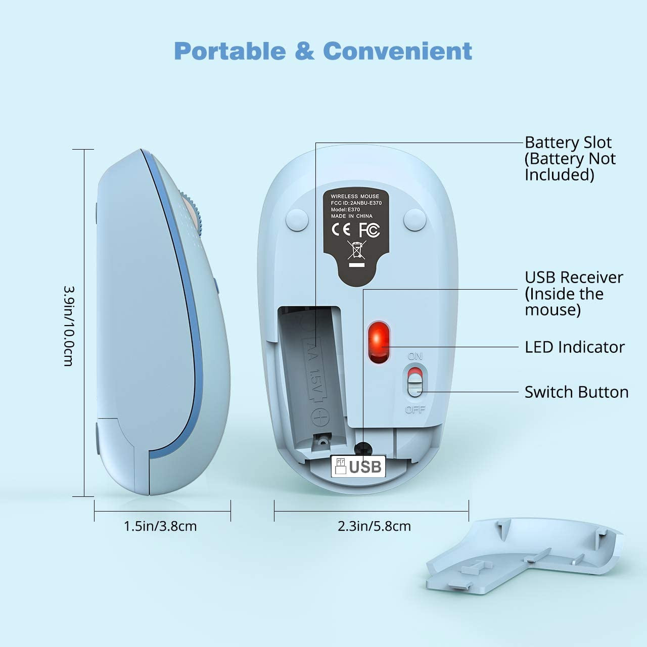 Portable Wireless Mouse, 2.4GHz Silent with USB Receiver, Optical USB Mouse