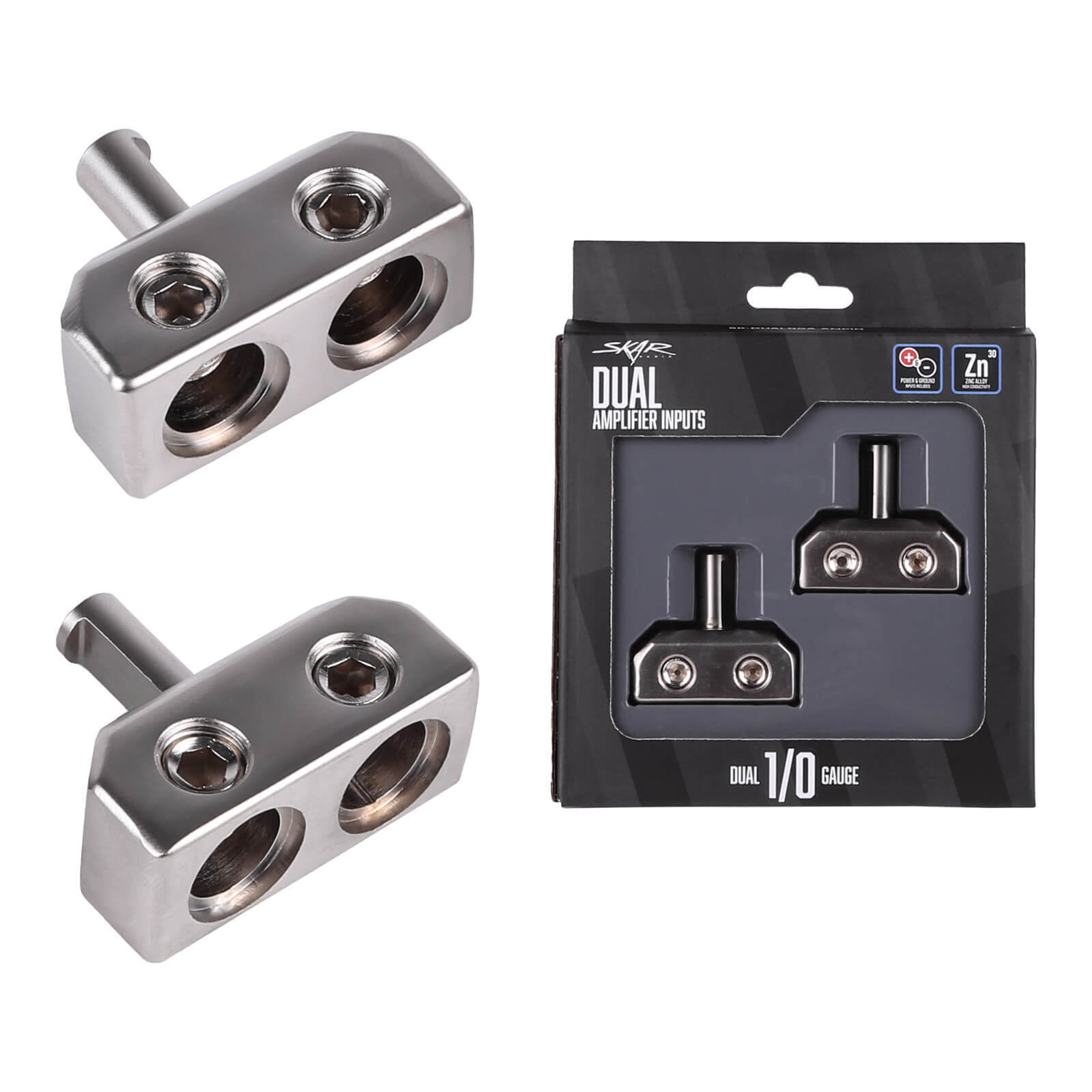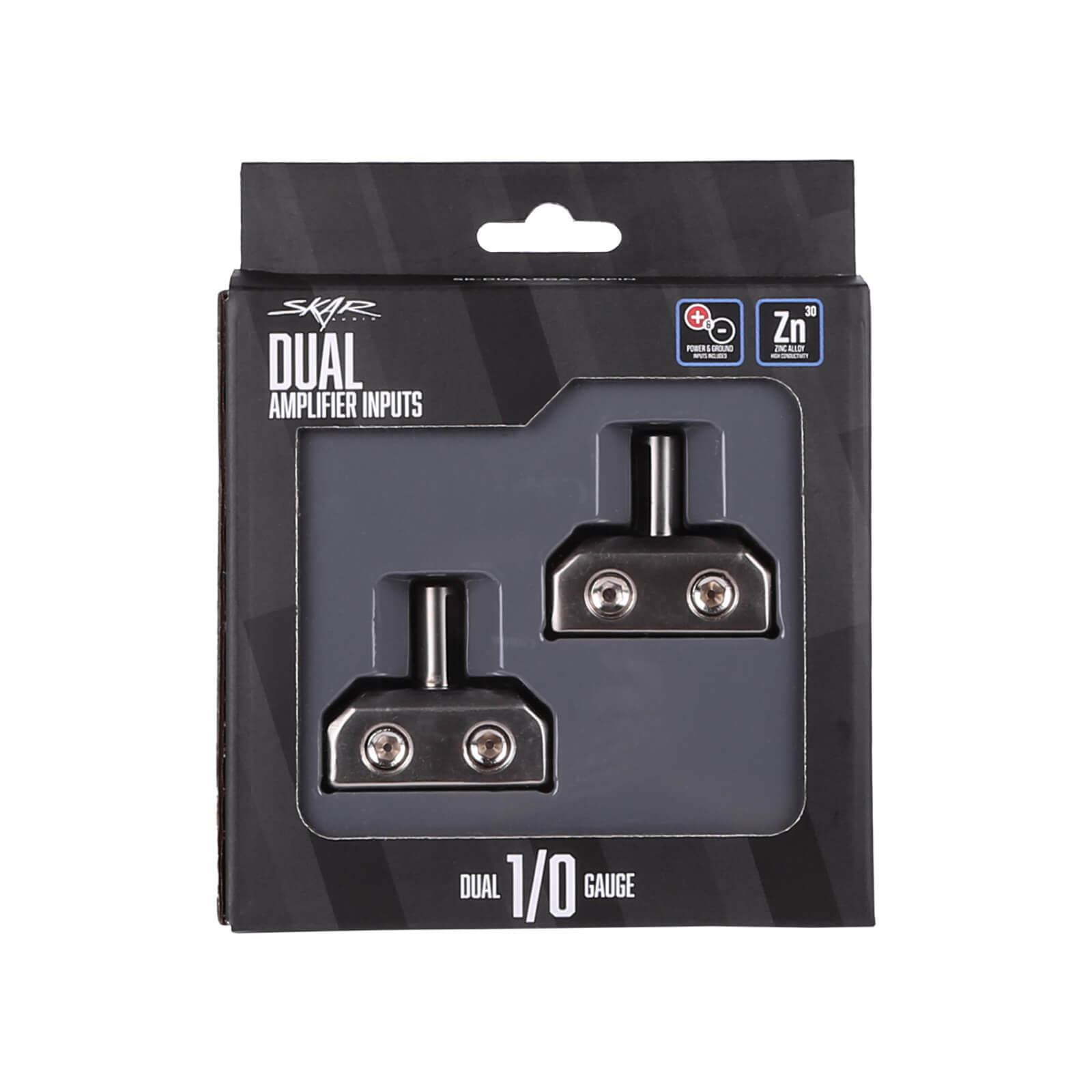 NEW SKAR AUDIO X2 1/0 GAUGE TO 1/0 GAUGE DUAL AMPLIFIER INPUT SK-DUAL0GA-AMPIN