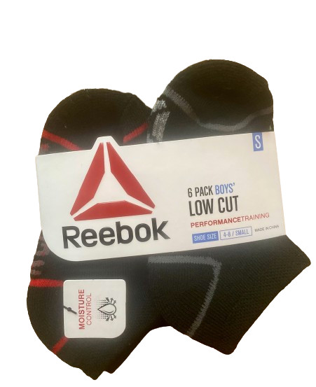 Reebok Boys 12 pair Size Small 4-8 Black Gray White Moisture Control Socks