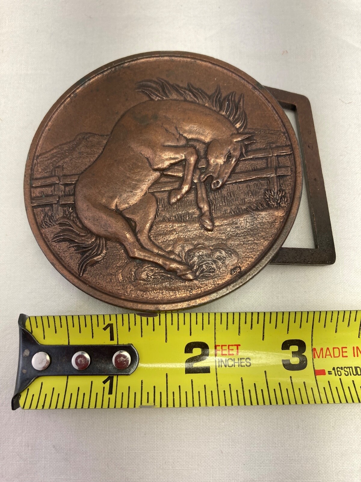 Bucking Bronco Western Belt Buckle Vintage Solid Metal 3 Unbranded