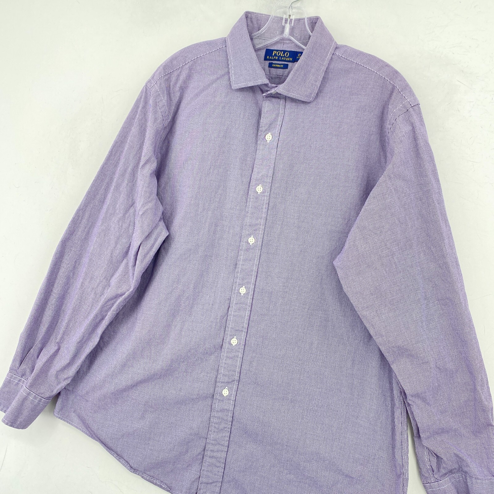 Polo Ralph Lauren Button Up Shirt Mens Size 17 Purple Houndstooth Custom Fit