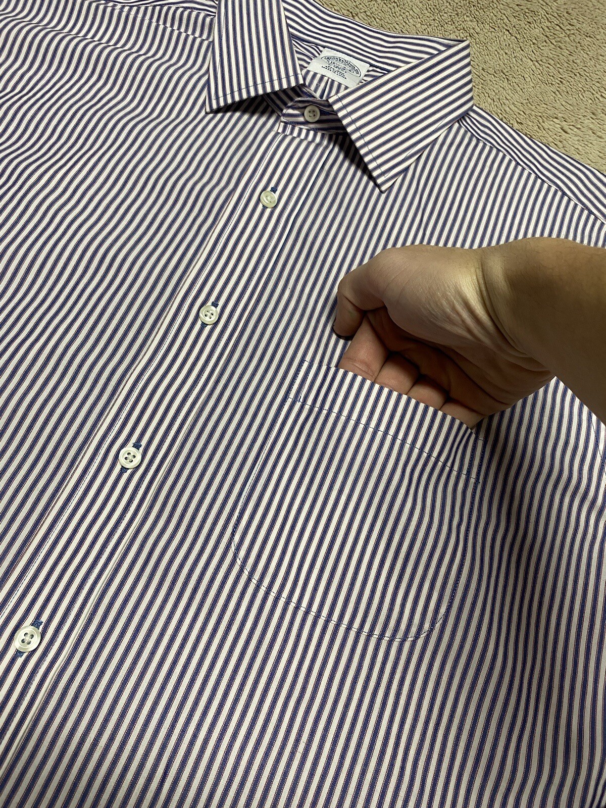 как выглядит Brooks Brothers Regent Shirt Mens 16.5 4/5 Blue White Striped Long Sleeve Adult фото