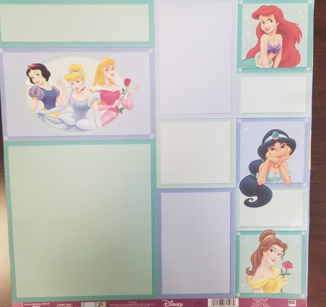 Disney Princess EK Success 6 peice Set 12x12 Pages Stickers Rub ons